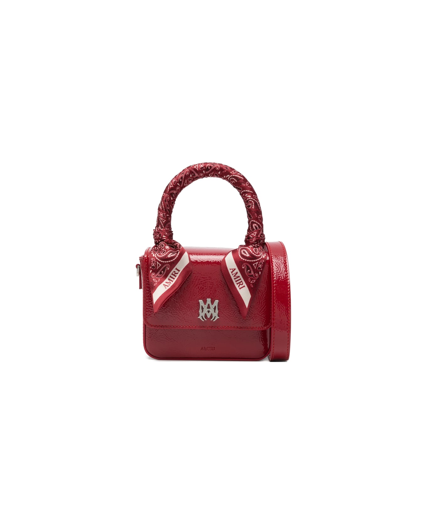 red silver-tone logo plaque scarf top handle flap top magnetic fastening