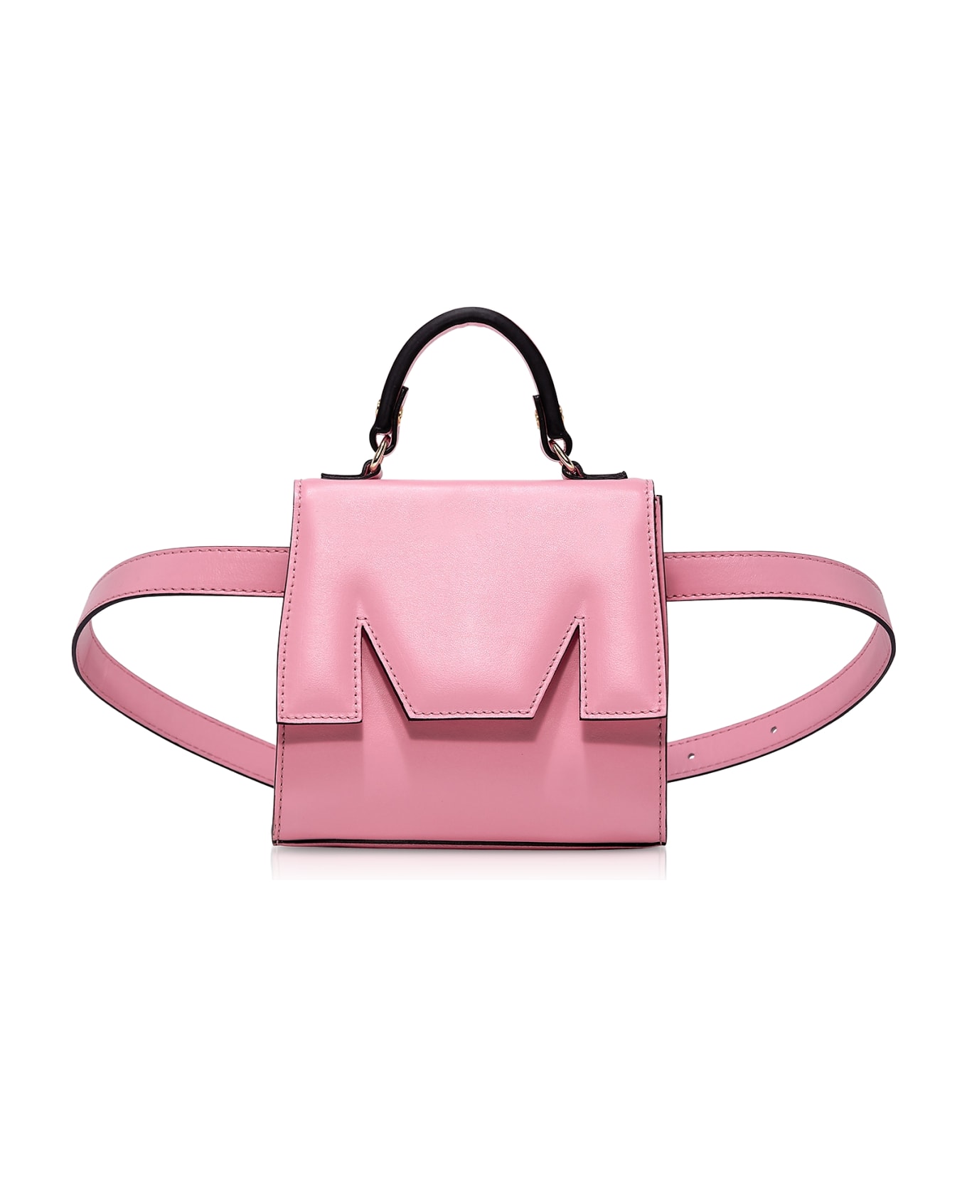 An innovative take on the retro favorite the M Bum Belt Bag elevates your street style right into the night. Wear around the waist crossbody or detach the belt and take as a mini handbag. Crafted in smooth calf leather the bumbag features M-flap top with magnetic snap close top handle interior flat pocket embossed logo on the back contrast finish adjustable leather strap and gold tone hardware. Dust bag included. Closure: Flap top w/ magnetic snap closure; Handles: Adjustable w/ belt; Hardware Material: Goldtone metal; Lining: Signature Fabric; Pockets: 1 compartment