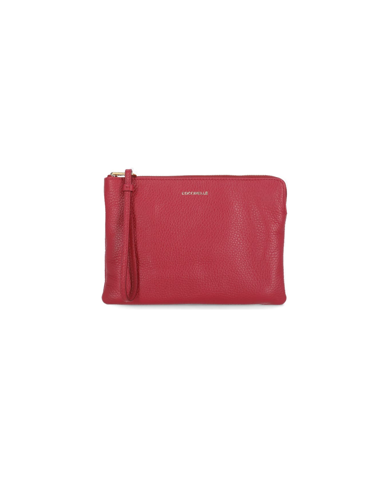 - Red Coccinelle pebbled leather pochette for woman - Front contrasting colour embossed logo - One main compartment - One internal pocket - Zip fastening