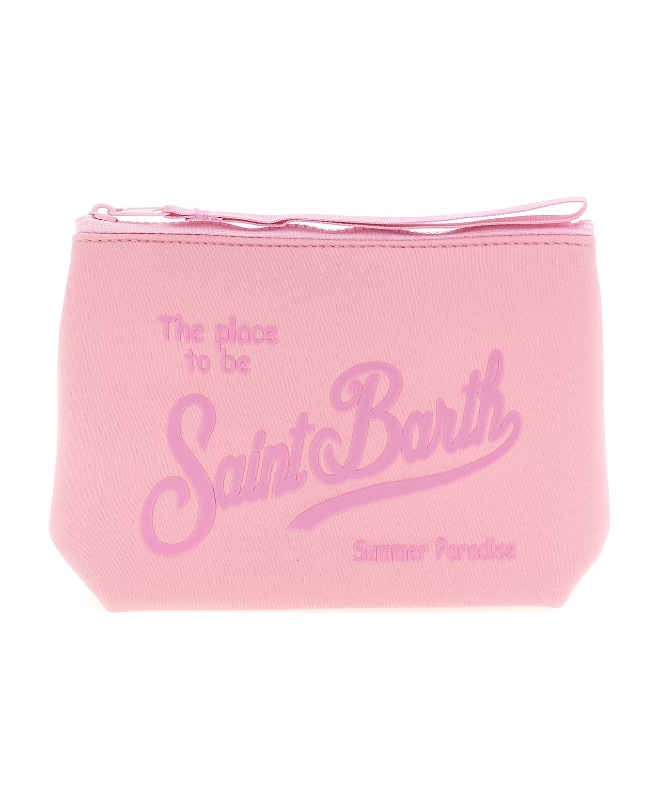 'Aline' clutch bag in scuba fabric with embossed logo on the front and back, top zip closure, wrist handle. Composition: 80% sbr, 20% polyester