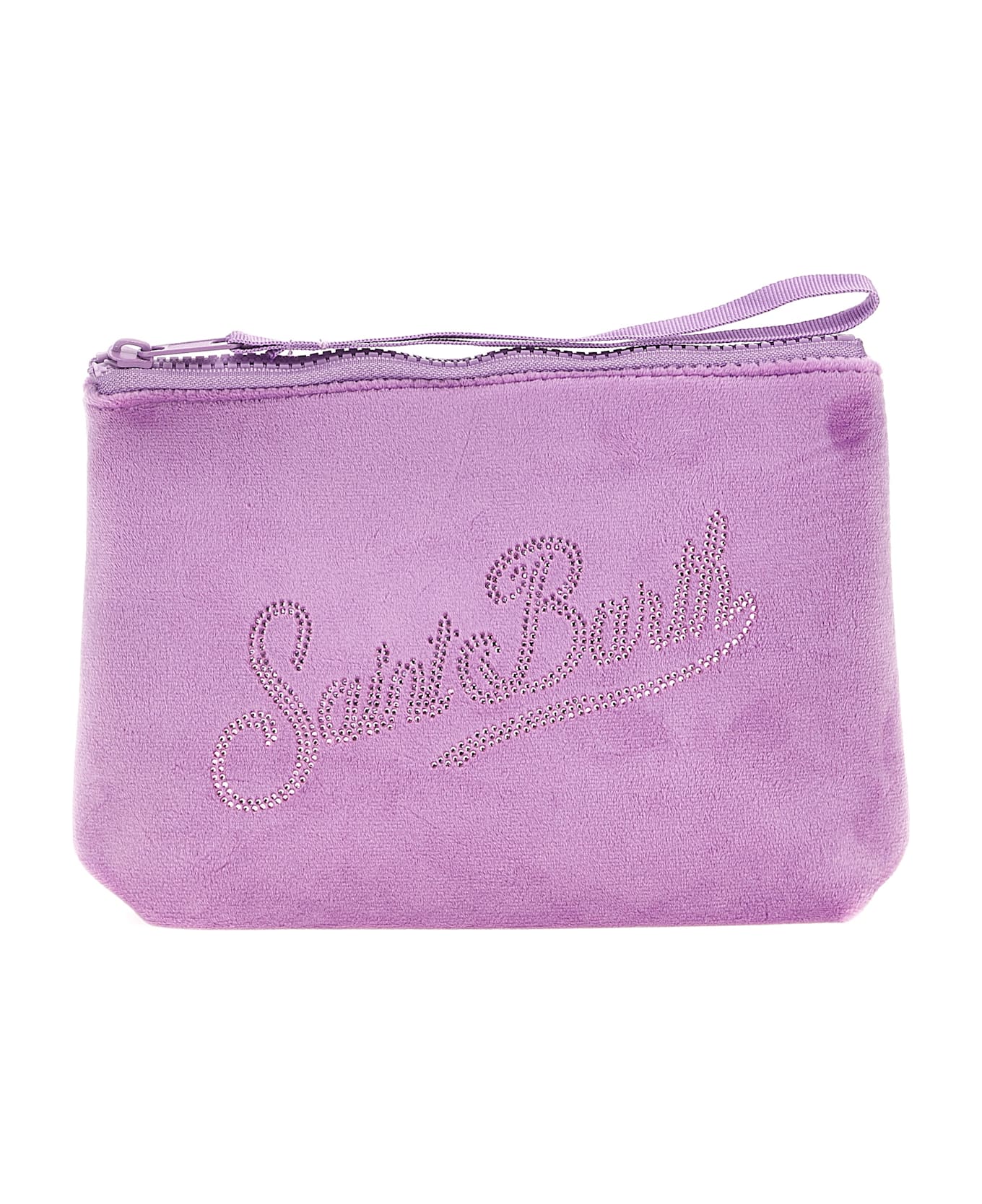 'Aline' clutch bag in velvet-like fabric, front logo with tone-on-tone rhinestones, zip closure. Composition: 700% sbr, 30% pa