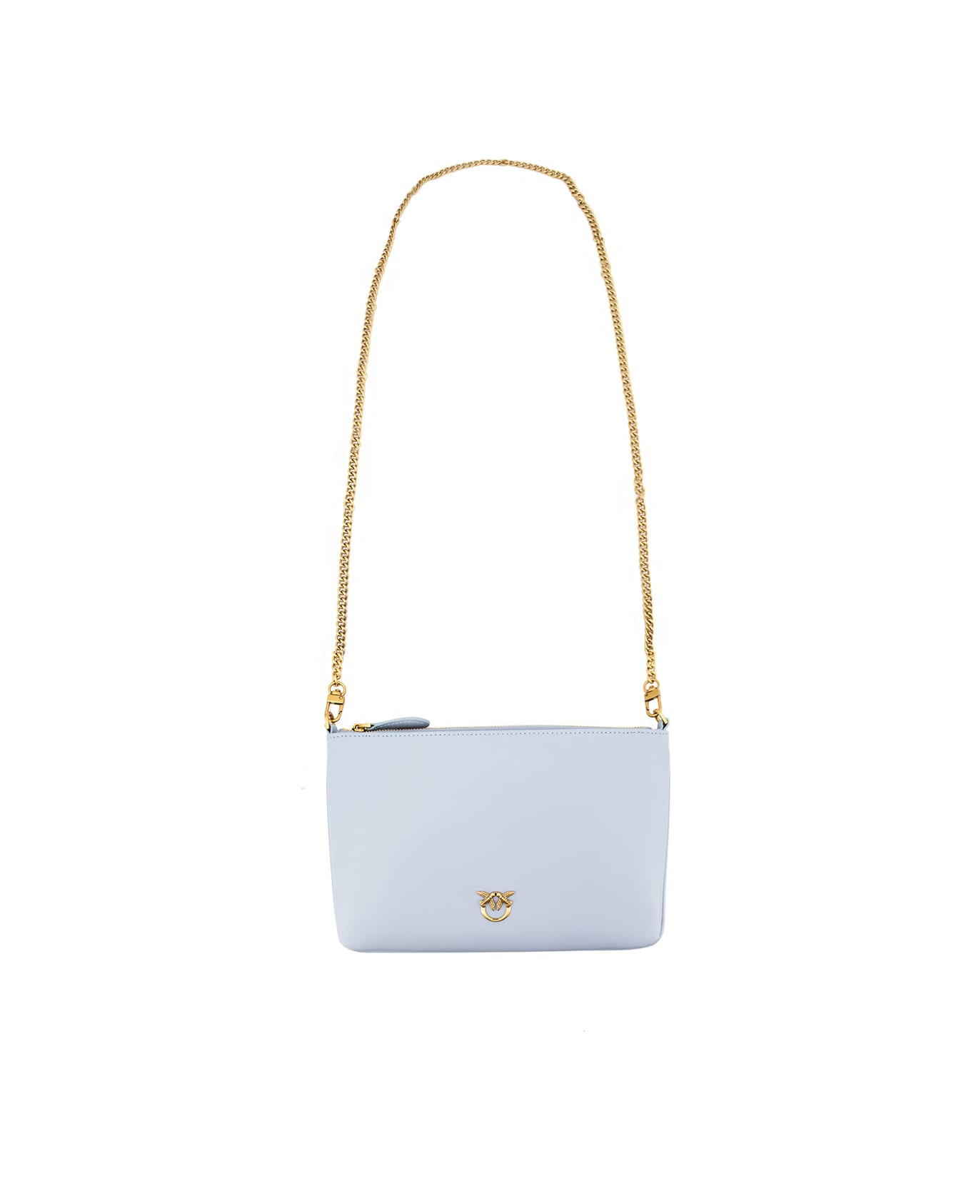 Shoulder bag made of leather, zip fastening on top, Love Birds Diamond Cut logo in gold-coloured metal on the front. Removable golden chain shoulder strap. The interior features a single compartment, a zip-fastening inner pocket, 3 card slots. Dimensions 24x16x2 cm