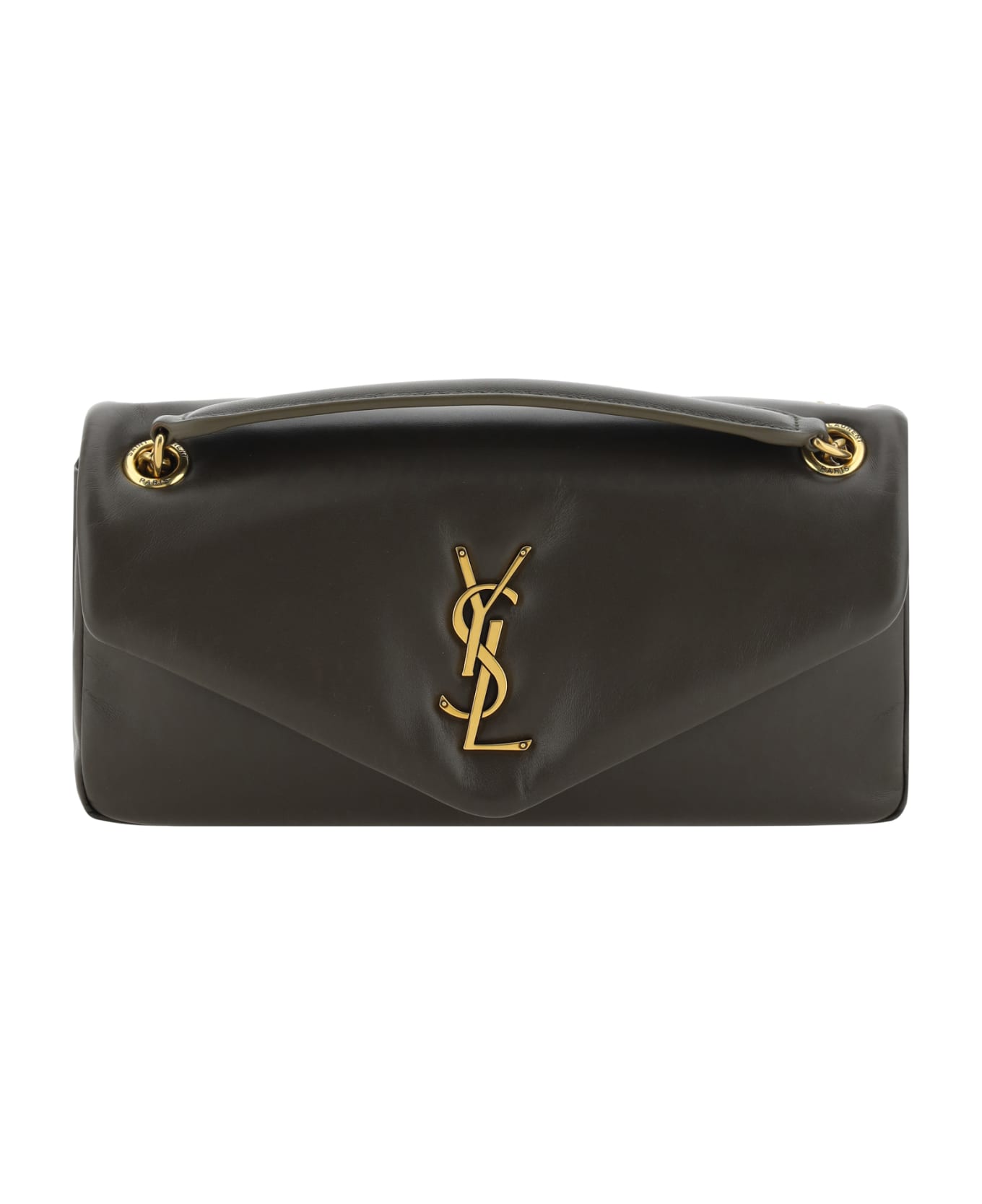 Calfskin calypso shoulder bag by saint laurent featuring front closure via magnetic flap, front embossed ysl iconic brand logo plaque, dual interior compartment, sliding chain strap with flat leather detail. Composition: 100% % Calf Leather Bos Taurus