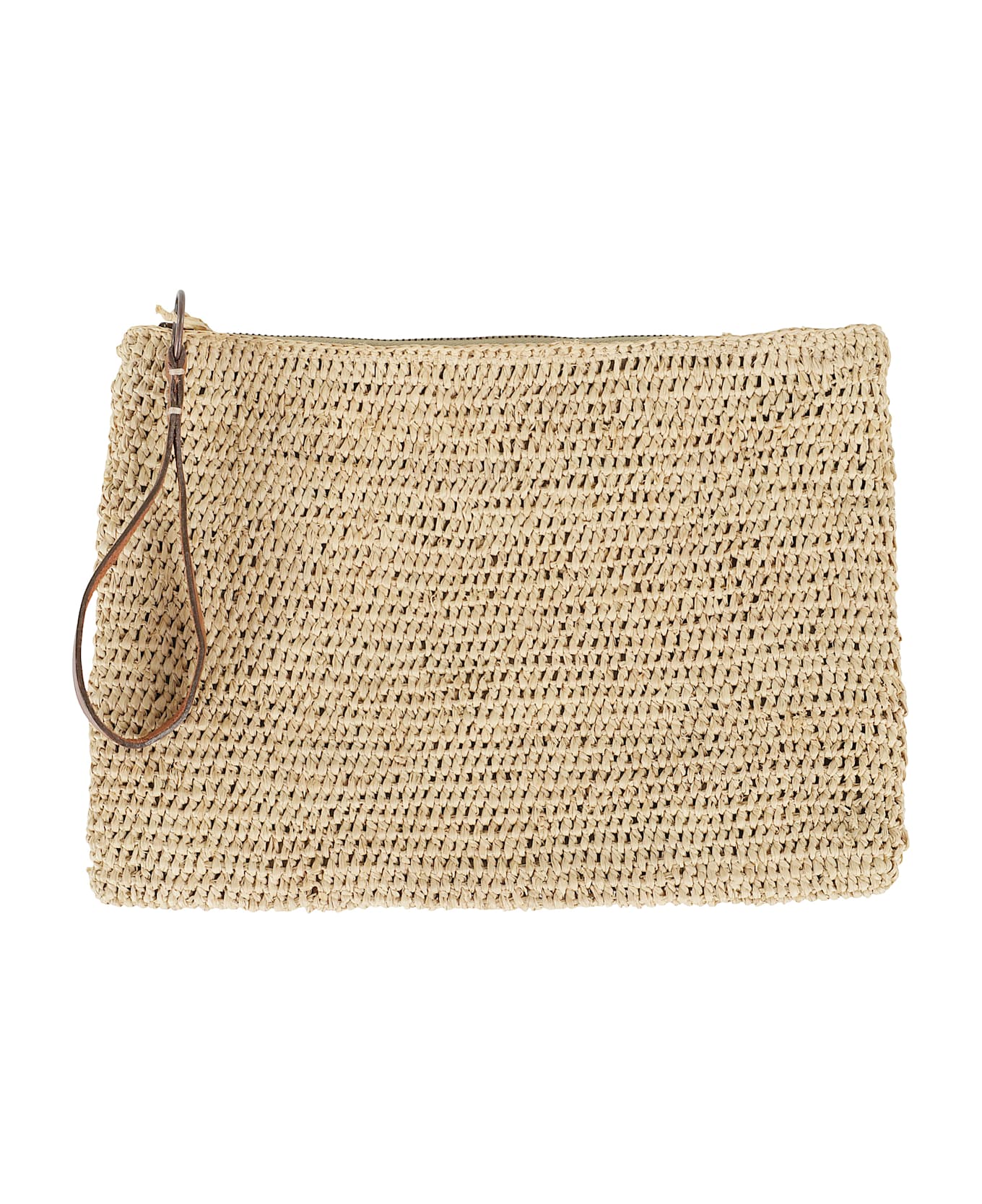 Ampy clutch bag - Ibeliv - Tea color - Made of natural raffia - Top zipper closure and leather strap - Size: 30 x 22 cm