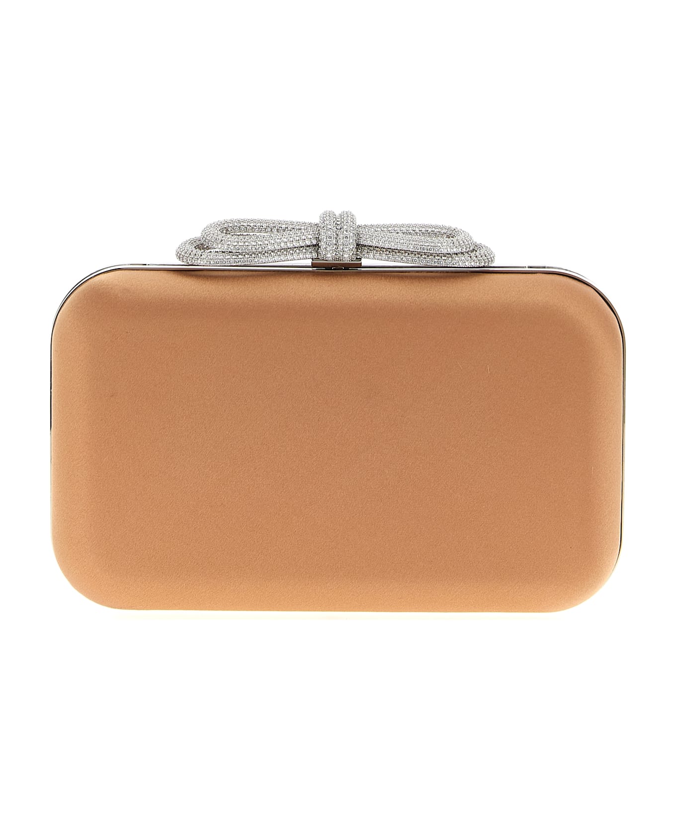 'Double Bow Satin' satin clutch, metal closure with jewel bow application, removable chain shoulder strap.