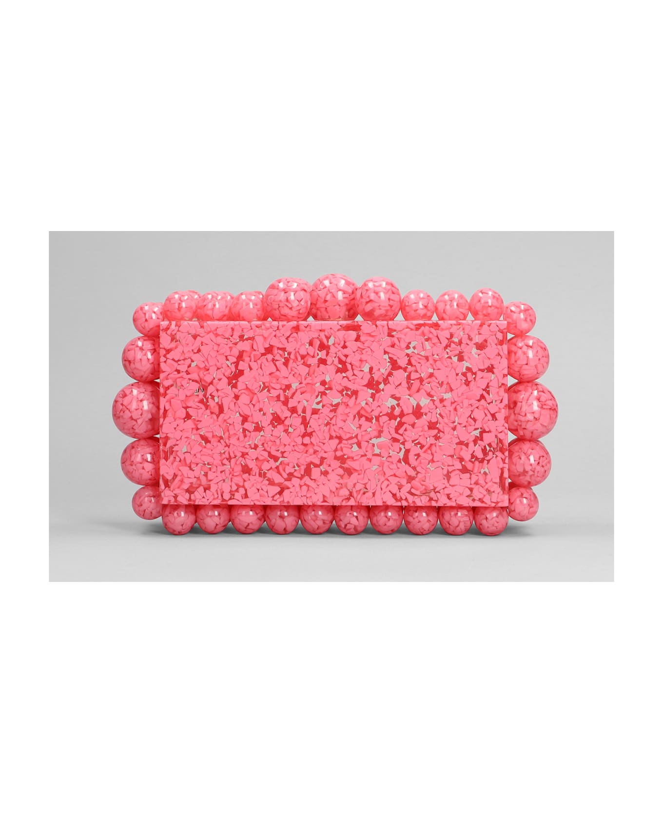 Eos Clutch in fuxia acrylic, Height 115 mm, Width 180 mm, Height 115 mm, snap closure, beads decoration, 100% acrylic, Made in Prc