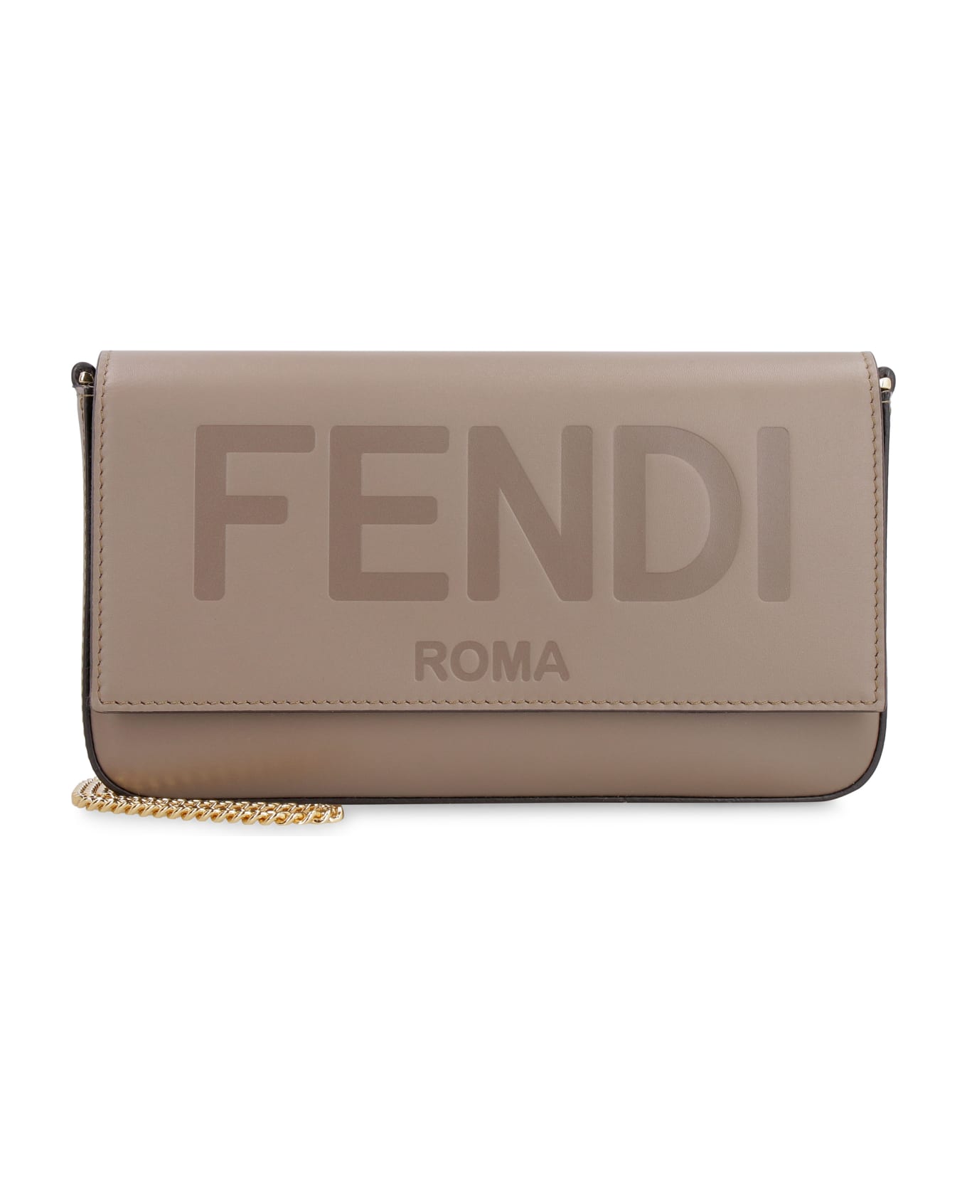 Smooth leather item Two internal open compartments with central zippered pocket Internal flat pocket Removable lining Eight card slots Removable chain strap Gold-tone metal hardware Leather and fabric lining Contrasting trimmings Width: 21 cm Height: 11 cm Depth: 3 cm Strap: 110 cm 100% Calf