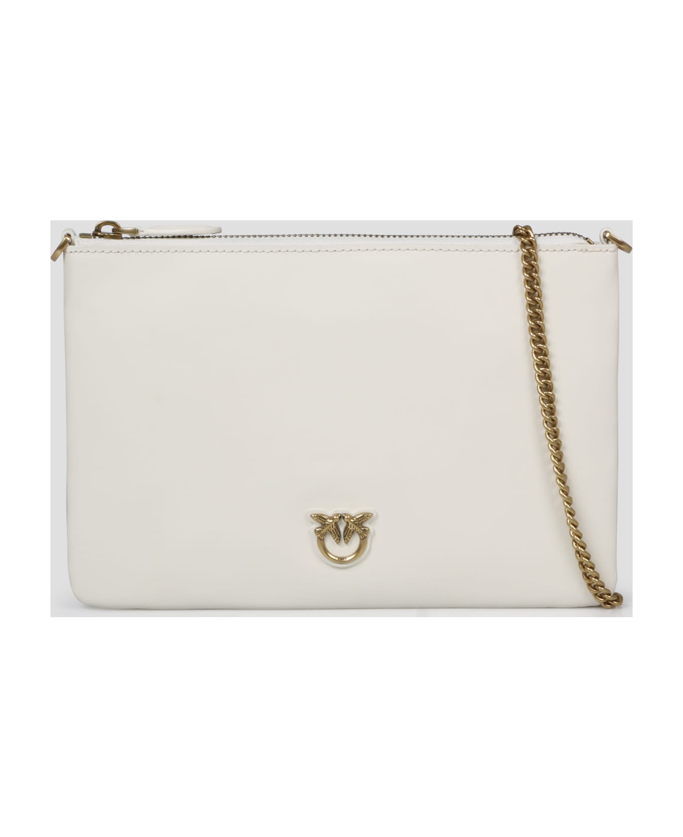 Pinko flat shoulder bag in silky leather embellished with Love Birds Diamond Cut metal detail. - SS23 - W 24cm H: 16cm D: 2cm - Removable chain shoulder strap - Zip closure - Inside: 1 flat pocket, 1 zip pocket - Antiqued gold-toned metal hardware - Made in China - Leather
