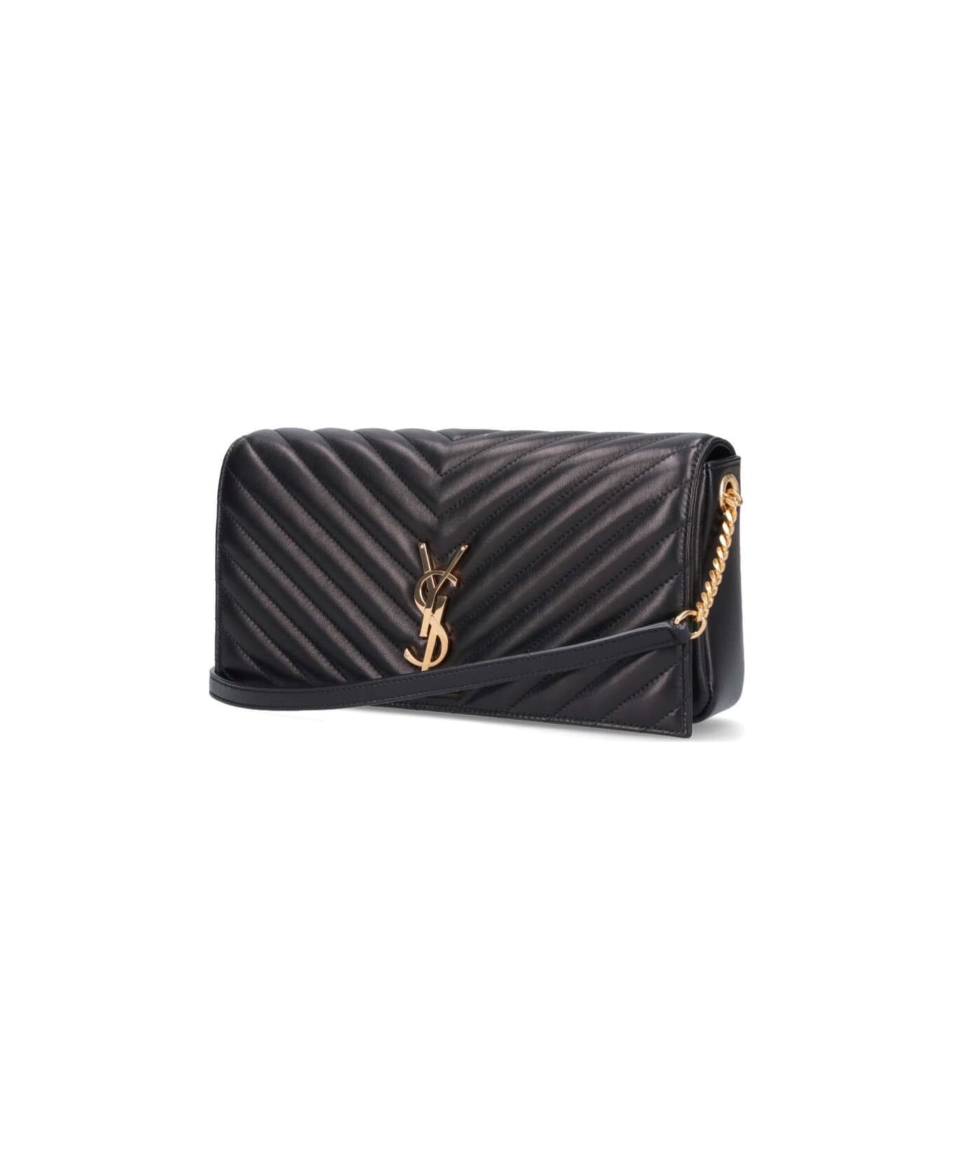 Saint Laurent 'Kate 99' shoulder bag in black nappa leather with chevron quilted stitching, removable top chain, front flap closure with gold metal logo detail, main inner compartment.