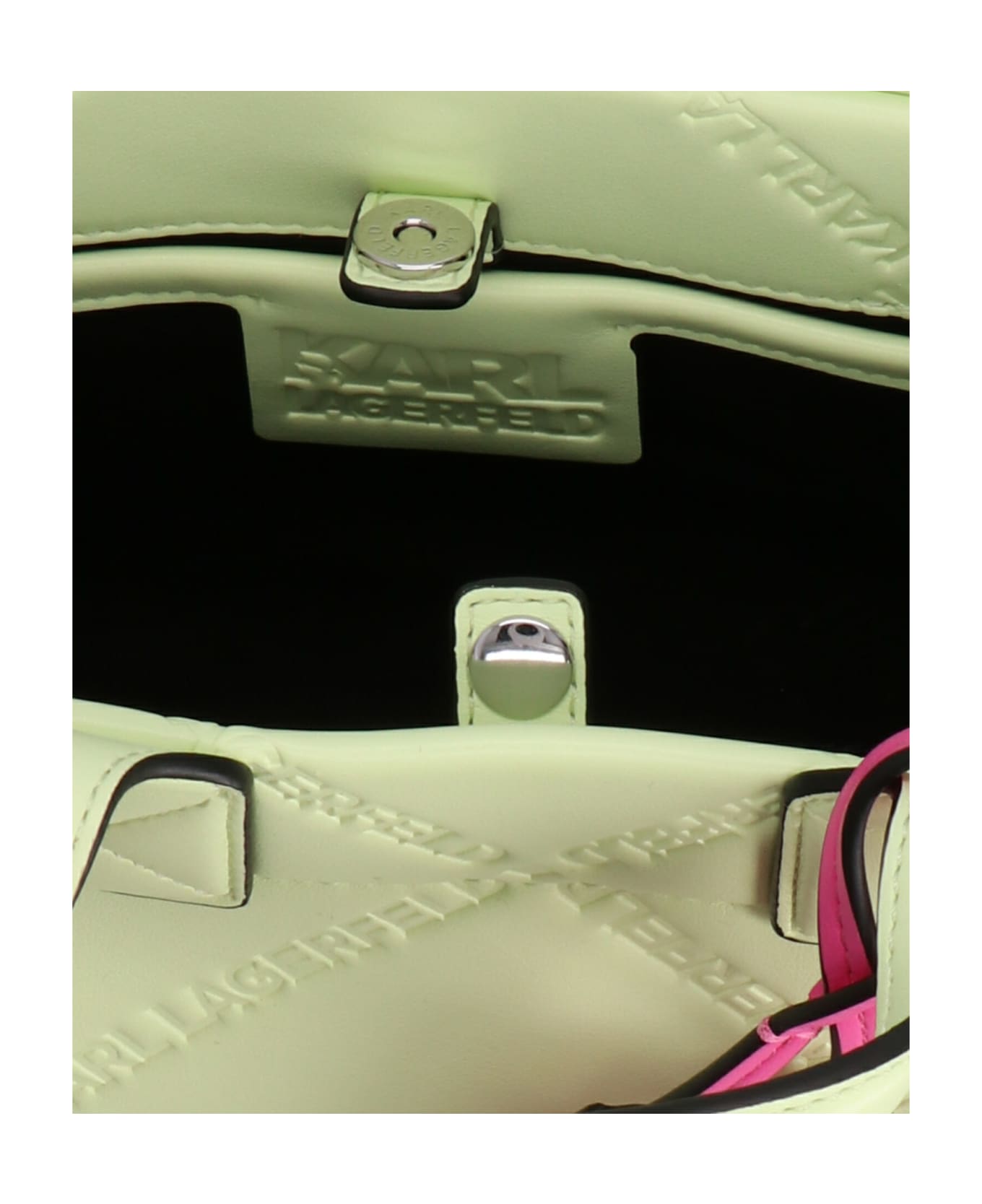 K/Nylon' fabric handbag with all-over embossed logo, magnetic flap closure, double handle, removable shoulder strap, inner zip pocket and a removable logo charm.