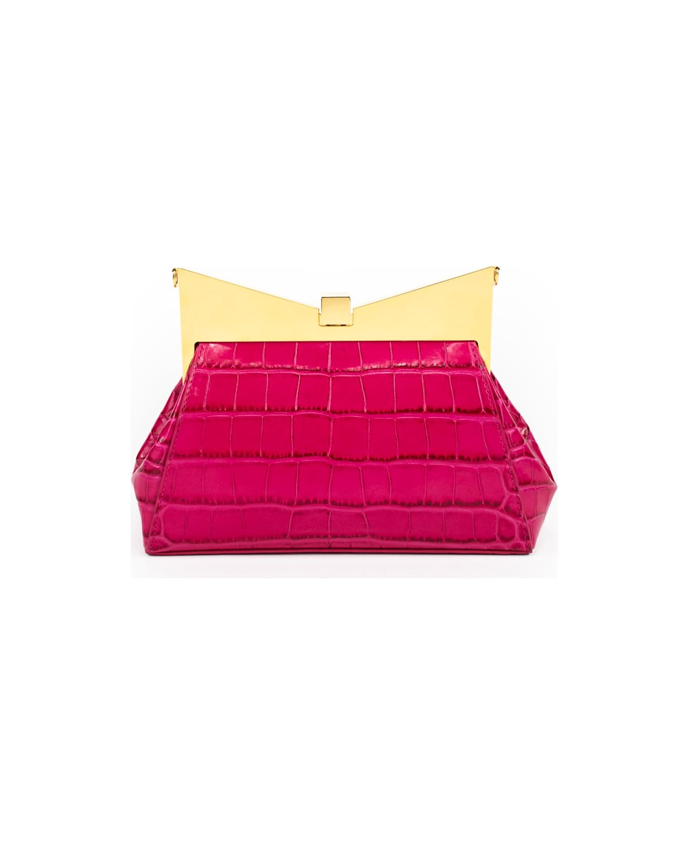 Elegant Lady Clutch in pink printed Croc, with detachable shoulder strap