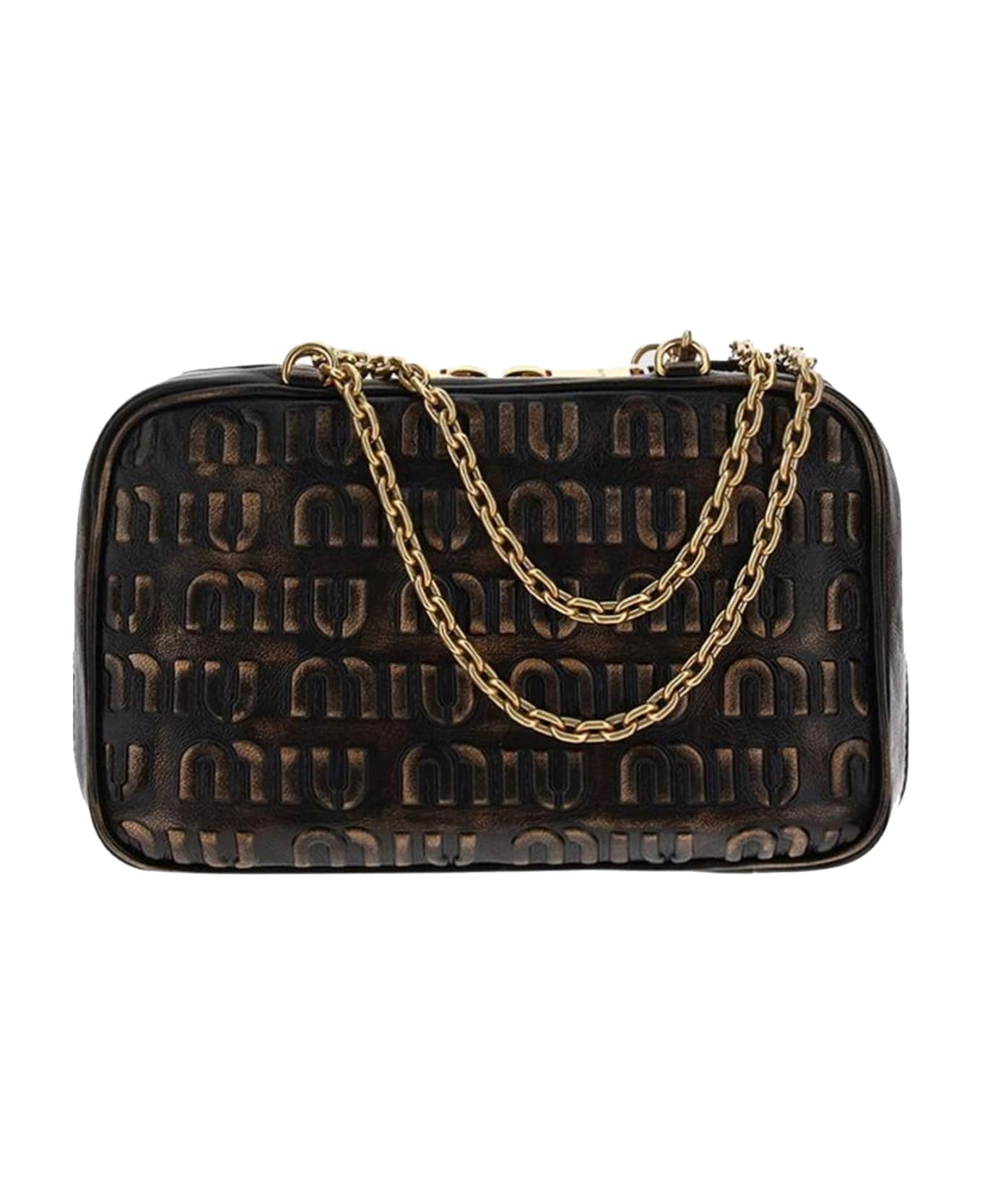 - Composition: 100% calf leather - Top zip closure - Chain shoulder strap - All over logo pattern - Length 23 cm / 9 in - Height 15 cm / 5,9 in - Width 7 cm / 2,7 in
