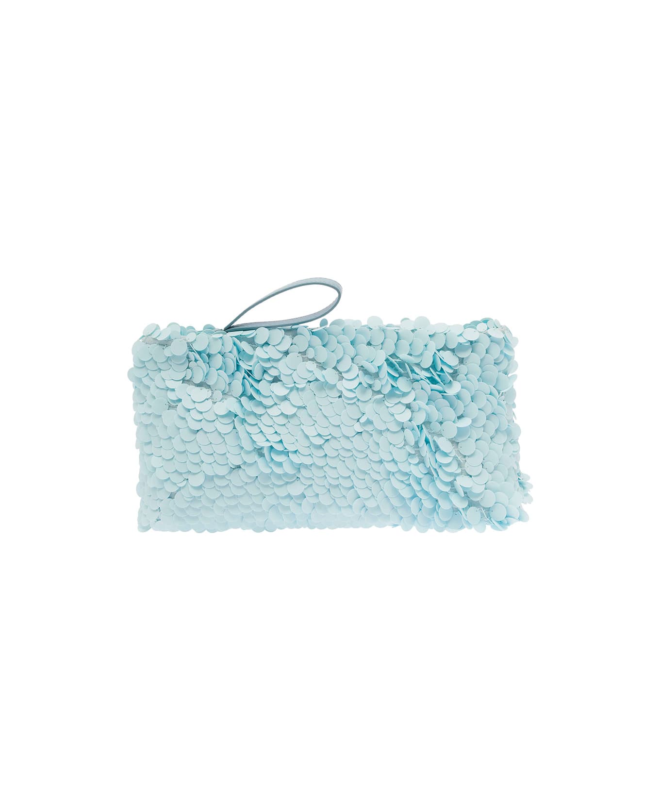 Light Blue Clutch Bag With All-over Paillettes Embellishment And Leather Details In Leather Woman
