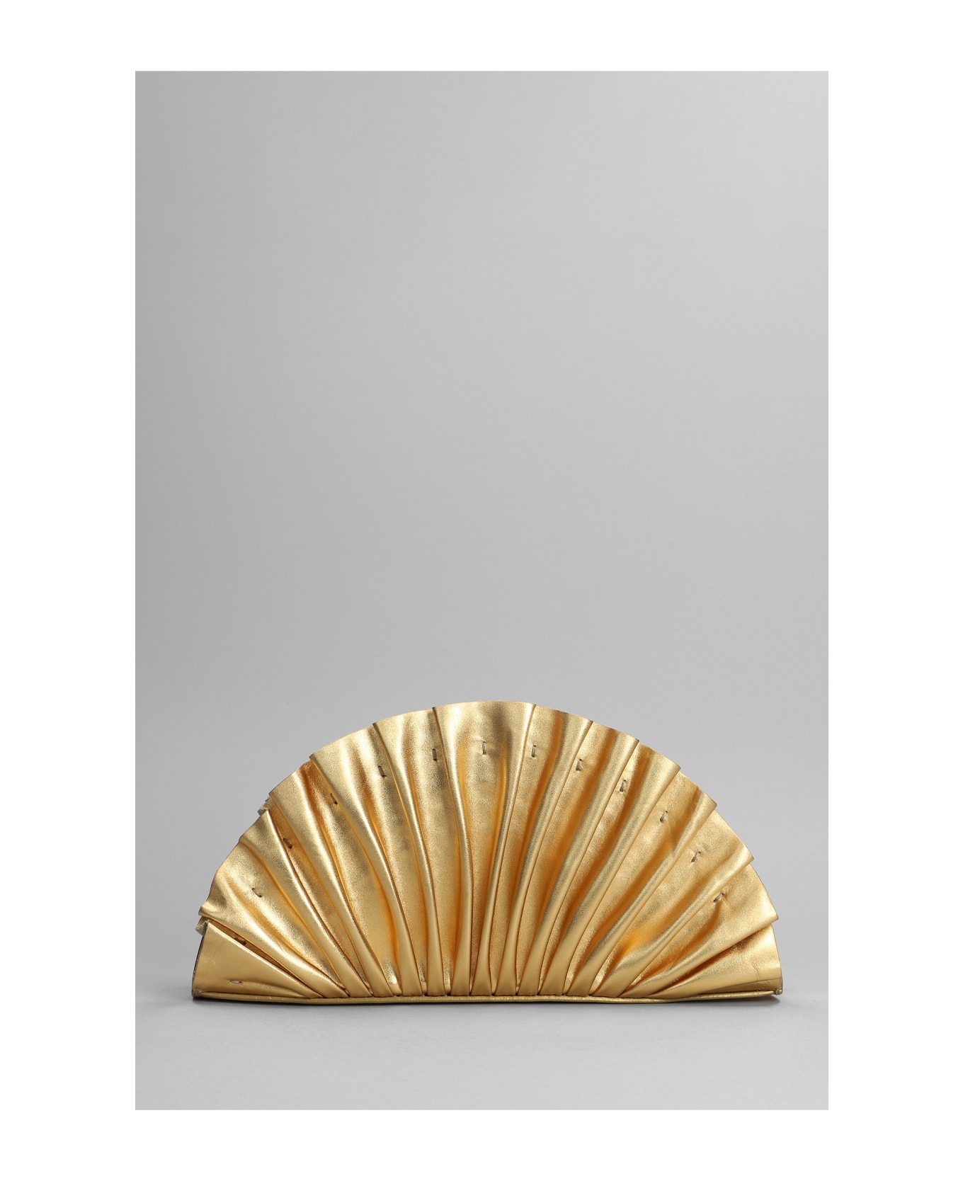 Nala mini Hand bag in gold leather, Height 140 mm, Width 260 mm, folding fan decoration, magnetic closure, side logo detail, 100% leather, Made in Turkey