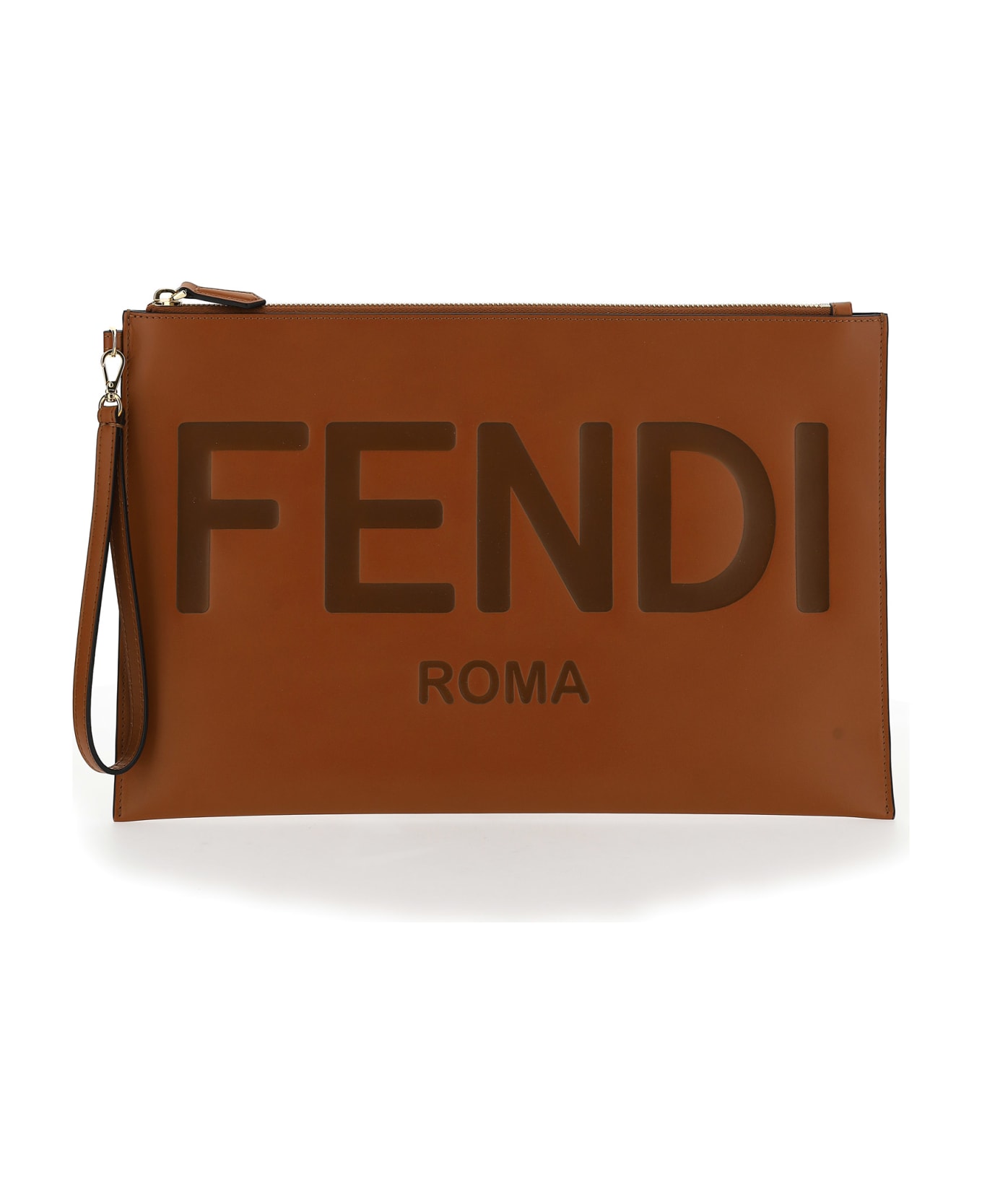 Calfskin Pouch by Fendi, zip closure, engraved logo on front, removable lateral wristlet. Composition: 100% Calf Leather Bos Taurus