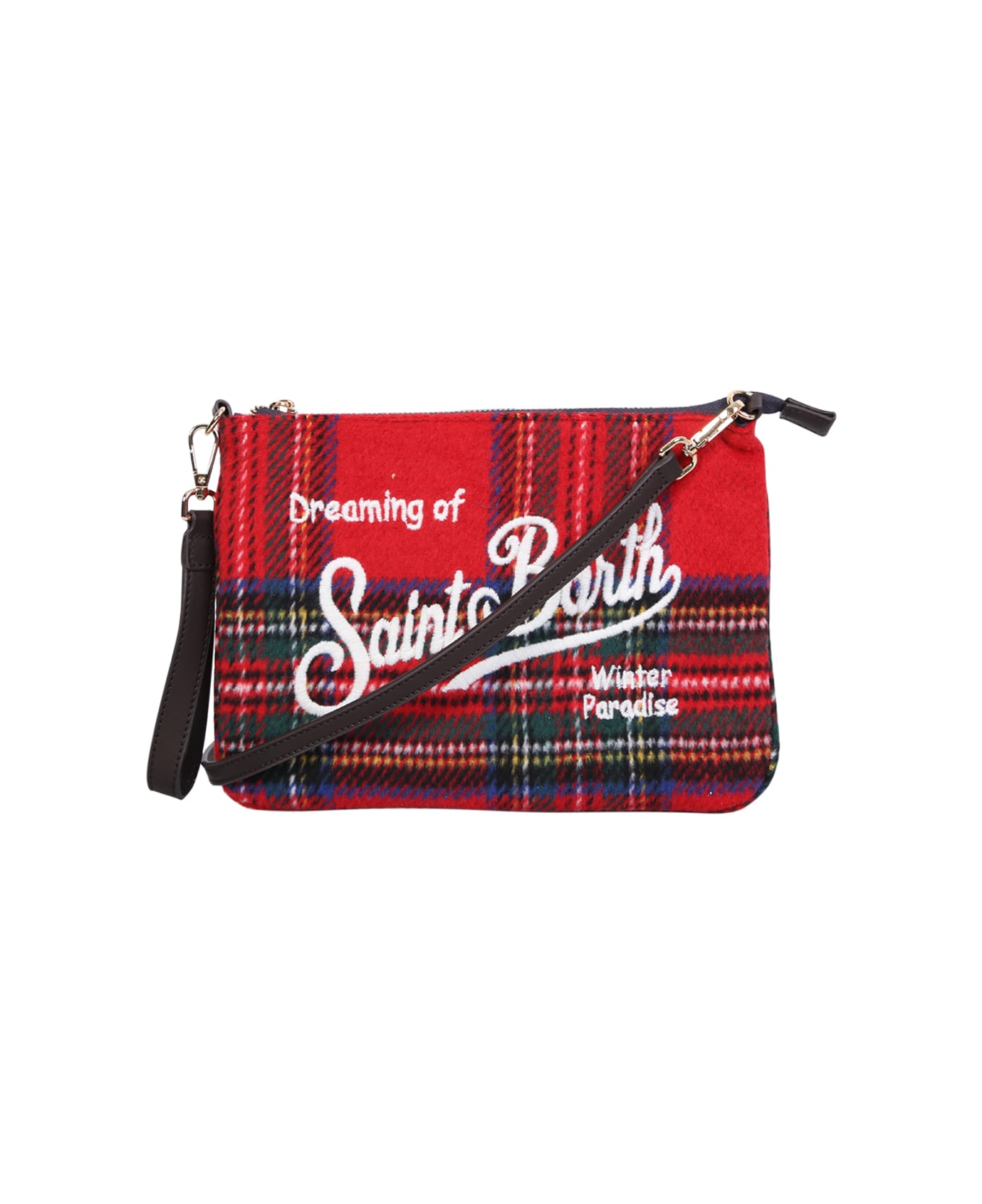 The 'TRTN LOGO ROSSO' clutch from MC2 SAINT BARTH blends timeless tartan fabric with vivid graphic details for a modern and exclusive touch. Composition: 50% Polyester, 50% Virgin Wool