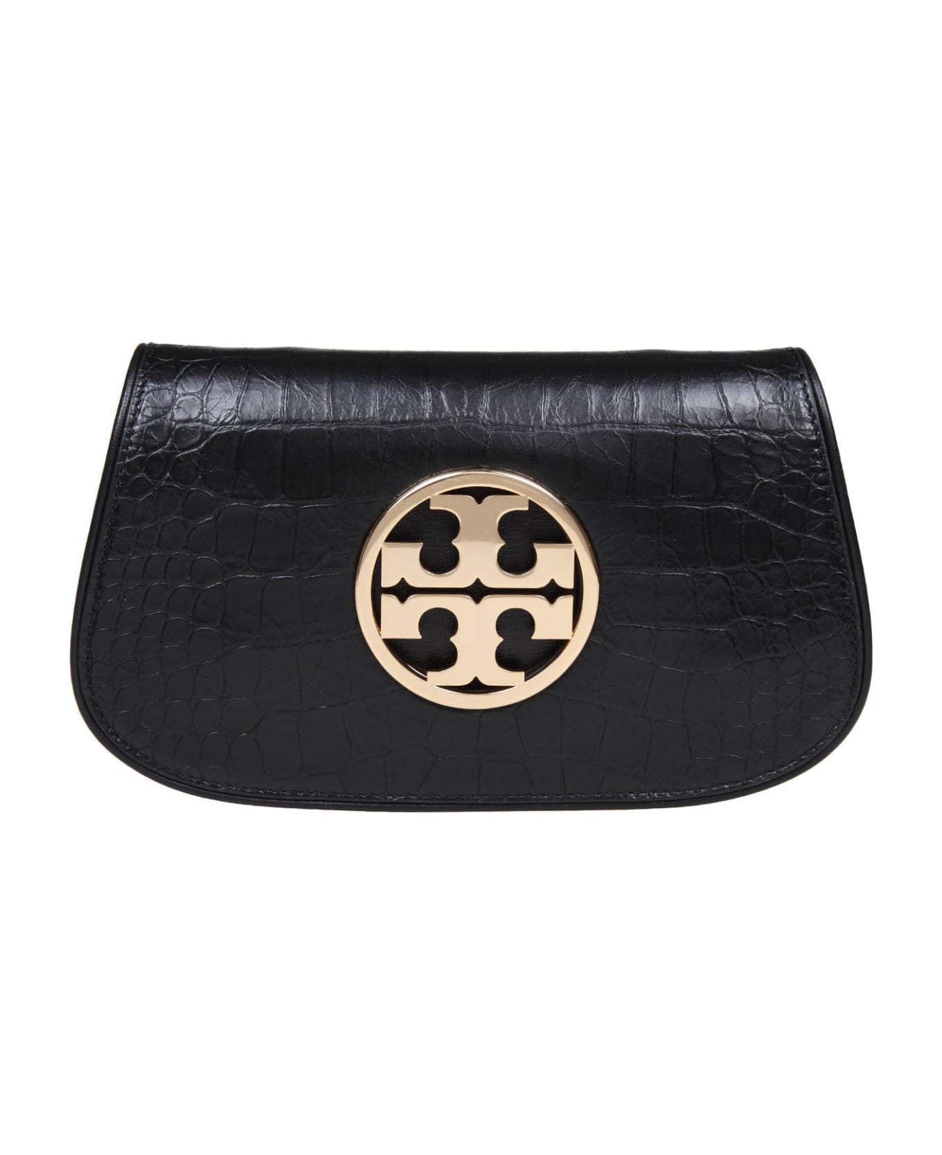 Croc print leather shoulder bag black colour magnetic flap closure double t logo in gold-colored metal single internal compartment removable metal shoulder strap one external back pocket a small internal card pocket suede interior measures: width 25cm height 15. 5cm depth 3. 5cm composition 100% leather made in cambodia