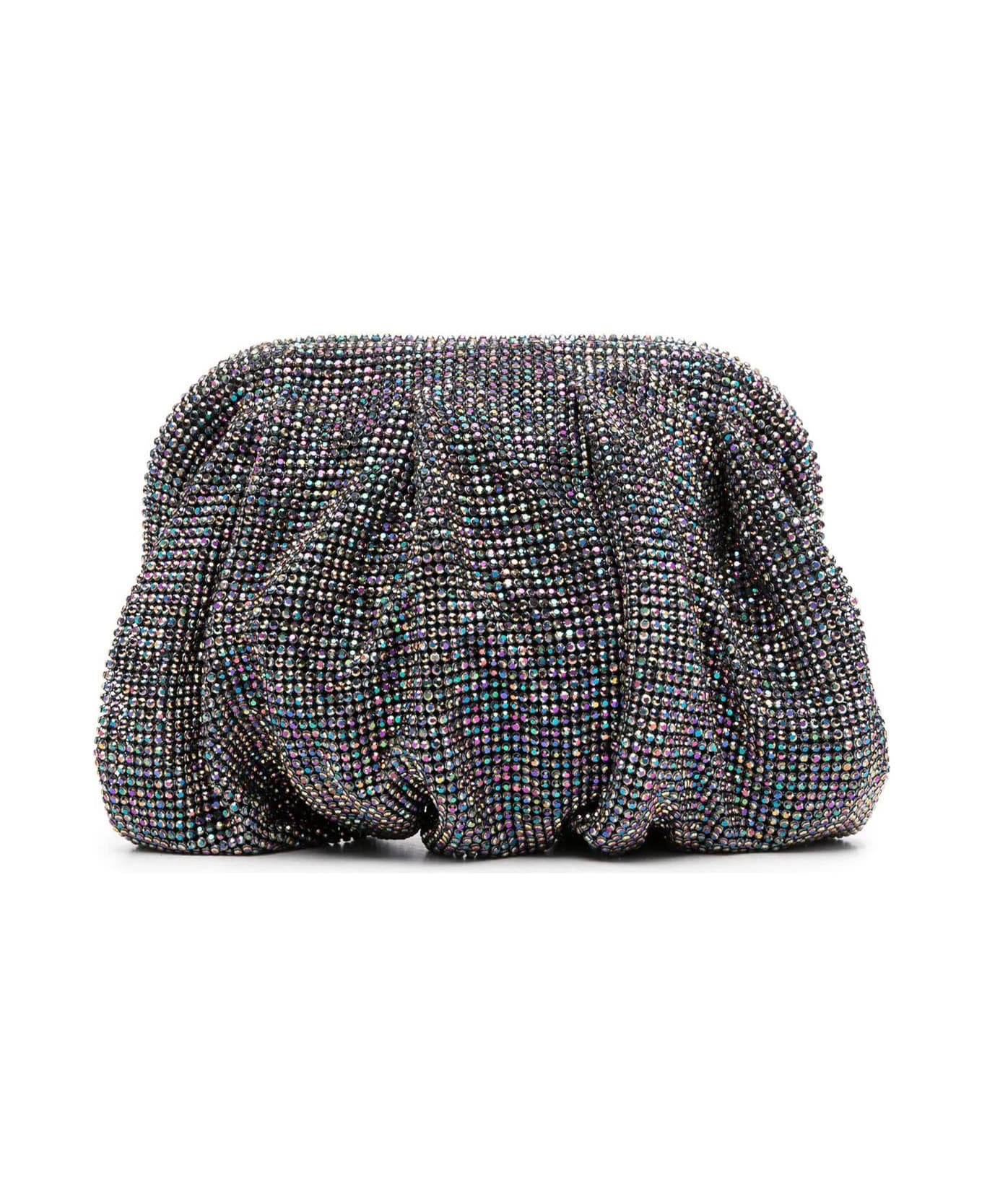 Silver rhinestone clutch bag, iridescent effect, embellishment, draped design, box-clasp fastening, main compartment, internal logo stamp, depth 9 cm, height 12 cm, width 18 cm Composition: Rhinestone, 100% , Silk, 100% , Aluminium, 100%