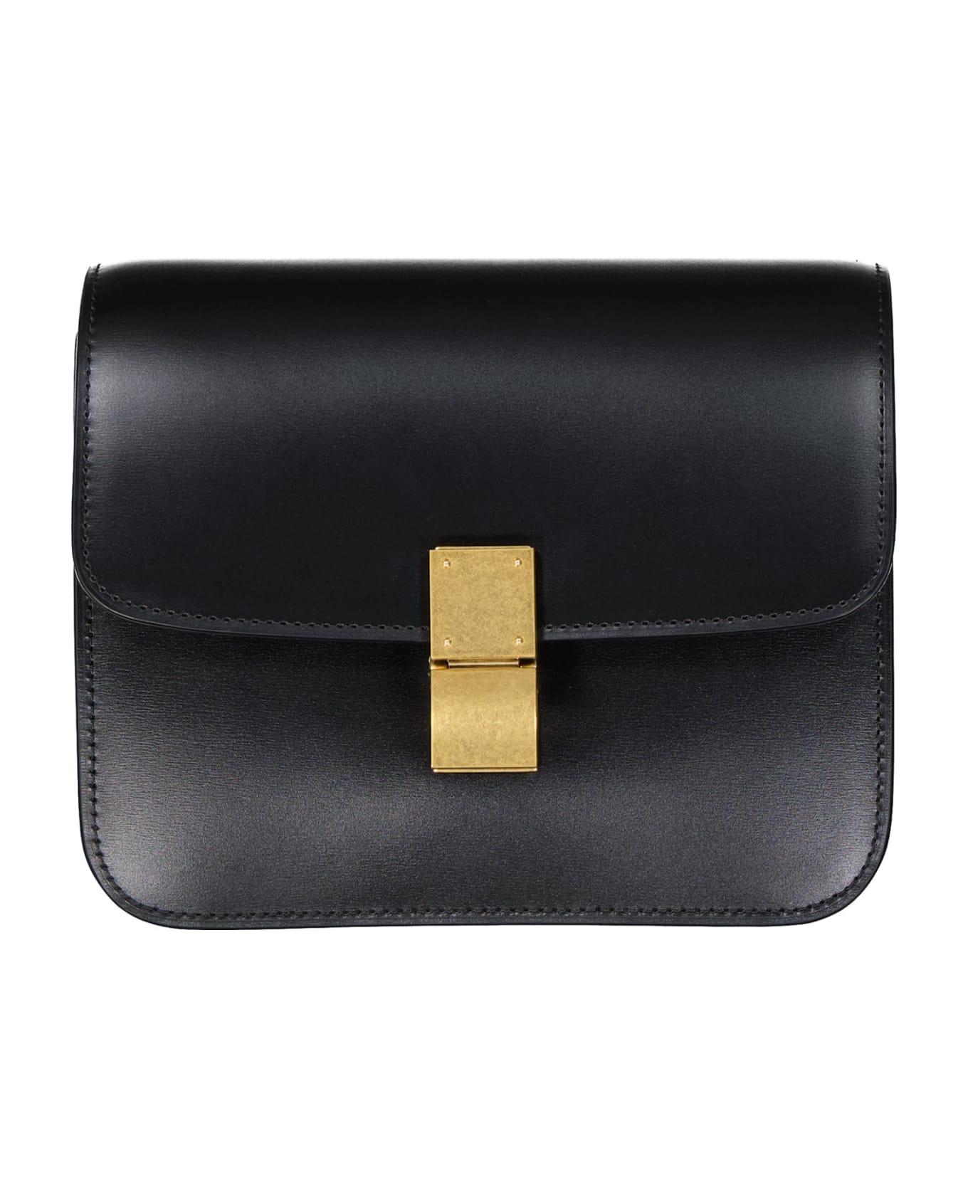 - Composition: 100% calf leather - Lambskin lining - Flap top push lock closure - Detachable shoulder strap - Gold tone logo detail - Lenght 18,5 cm - Height 15 cm / 5,9 in - Width 6 cm / 2,3 in