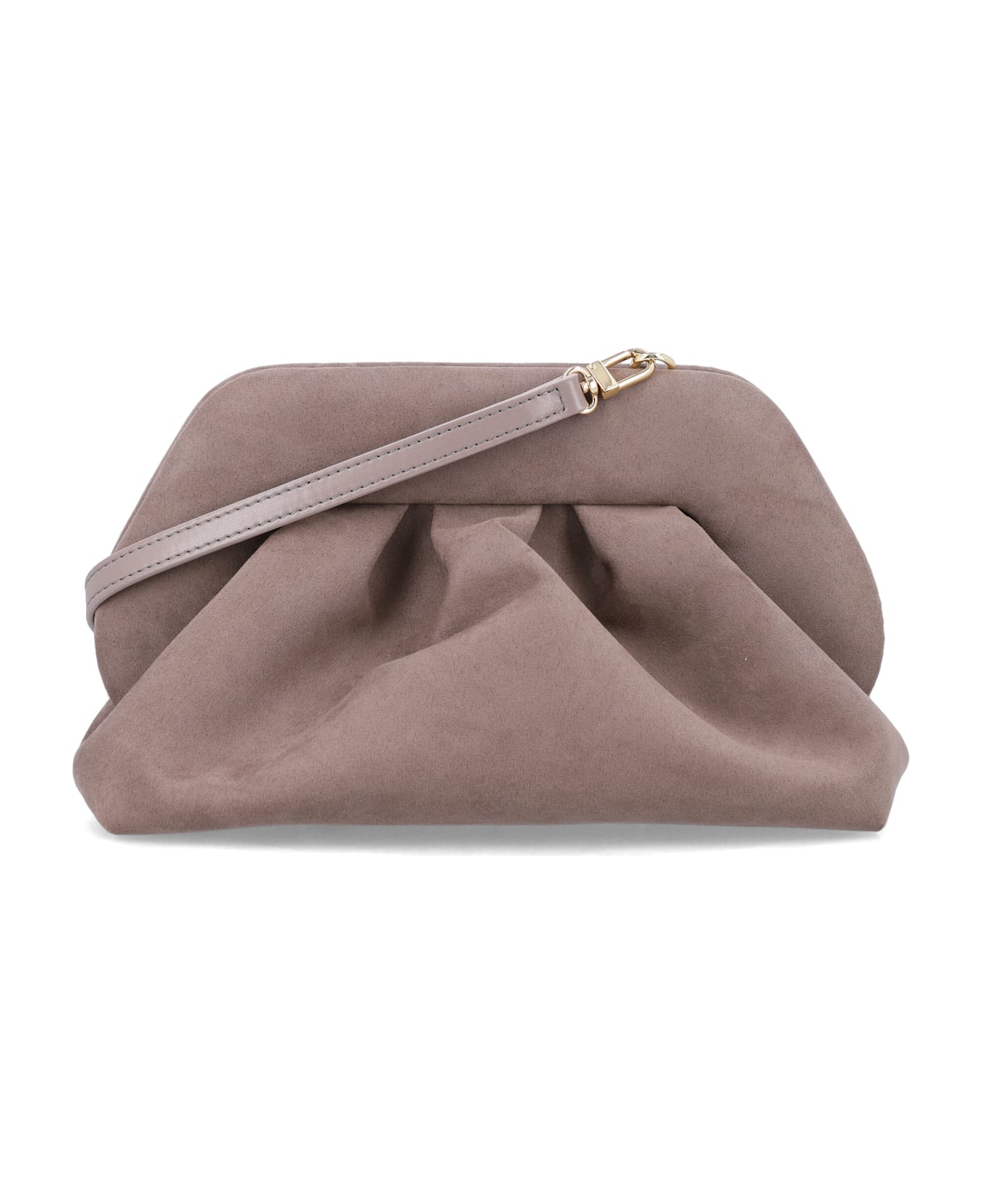 The Themoirè Tia Shoulder Bag In Vegan Suede Captures A Perfect Balance Of Structure And Softness. It Stands Out With The Brand s Signature Pleated Folds And A Sculptural Silhouette. Completed With A Removable And Adjustable Strap, It Transitions Seamlessly From Shoulder Wear To Handheld Styling, Making It An Elegant Choice For Both Day And Evening Occasions. Shoulder Bag In Vegan Suede Pleated Front And Back Design Magnetic Top Closure Removable And Adjustable Strap For Versatile Wear Internal Fabric Lining With Logo Label Sculptural Silhouette In A Warm Sand Hue Height: 17 Cm Width: 28 Cm Depth: 11 Cm