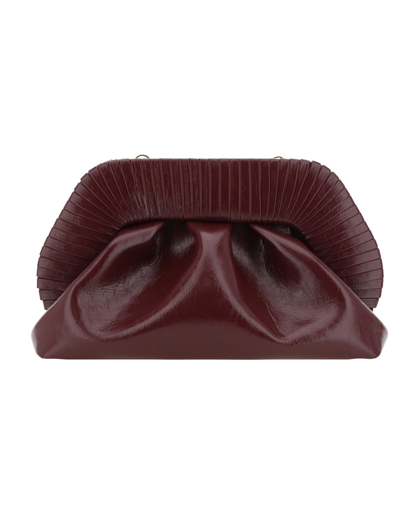 Tia cordonia shiny clutch bag by themoirè, removable and adjustable shoulder strap, magnetic flap closure, monochrome geometric design, single interior compartment.