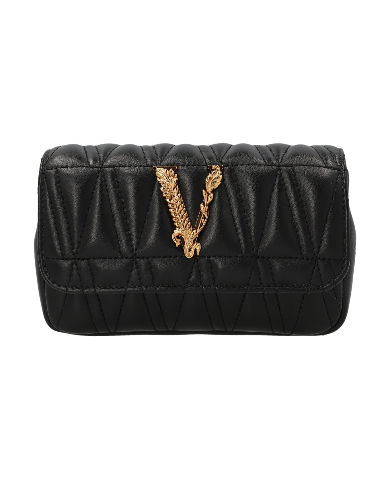 'Virtus' quilted nappa crossbody bag with gold logo and gold chain shoulder strap.