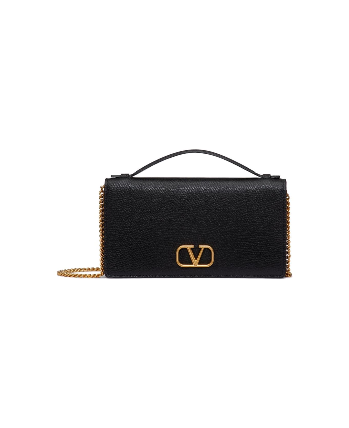 Valentino wallet black calf leather VLogo Signature chain-link shoulder strap single top handle foldover top with magnetic fastening internal zip pocket internal card slots The full look includes Valentino Garavani accessories. Composition: Calf Leather, 100%