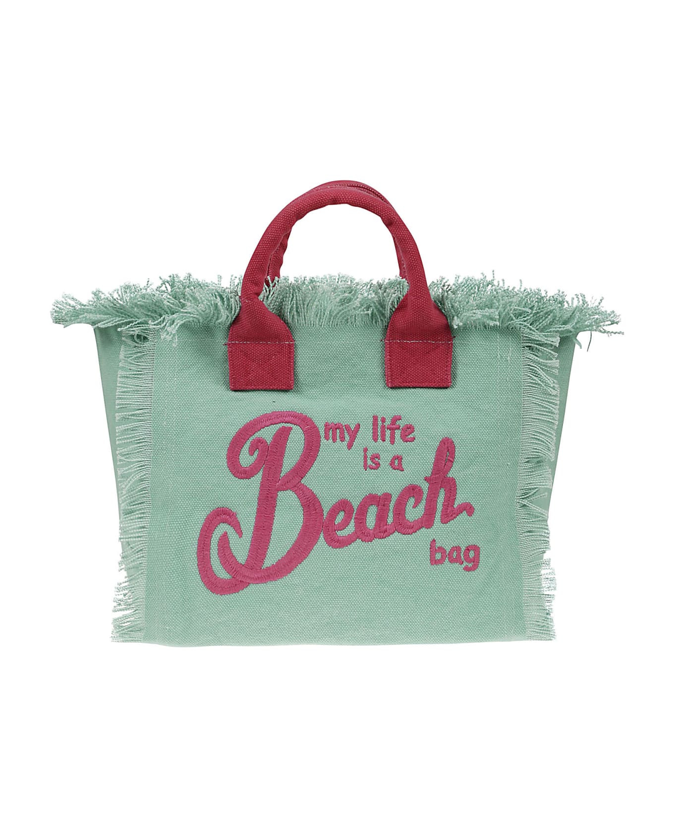MC2 Saint Barth Bag in light green cotton, fuchsia logo detail, fringe insert, size 26 x 14 x 23 cm Composition: 100% Co