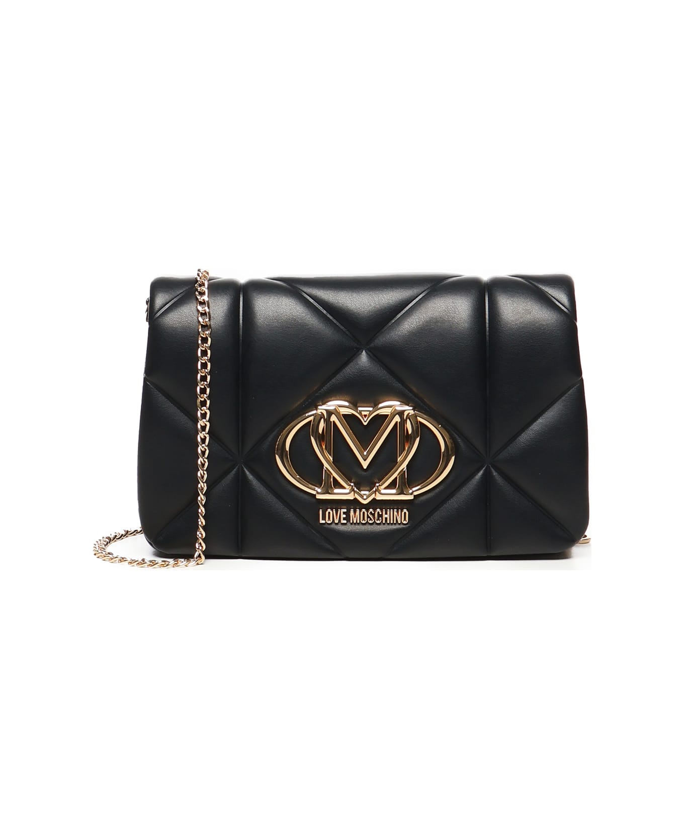 -Gold plated logo details -Chain shoulder strap -Magnetic closure -Lined -Two internal compartments -Dimensions: 23 x 14 x 5 cm -Color: Black