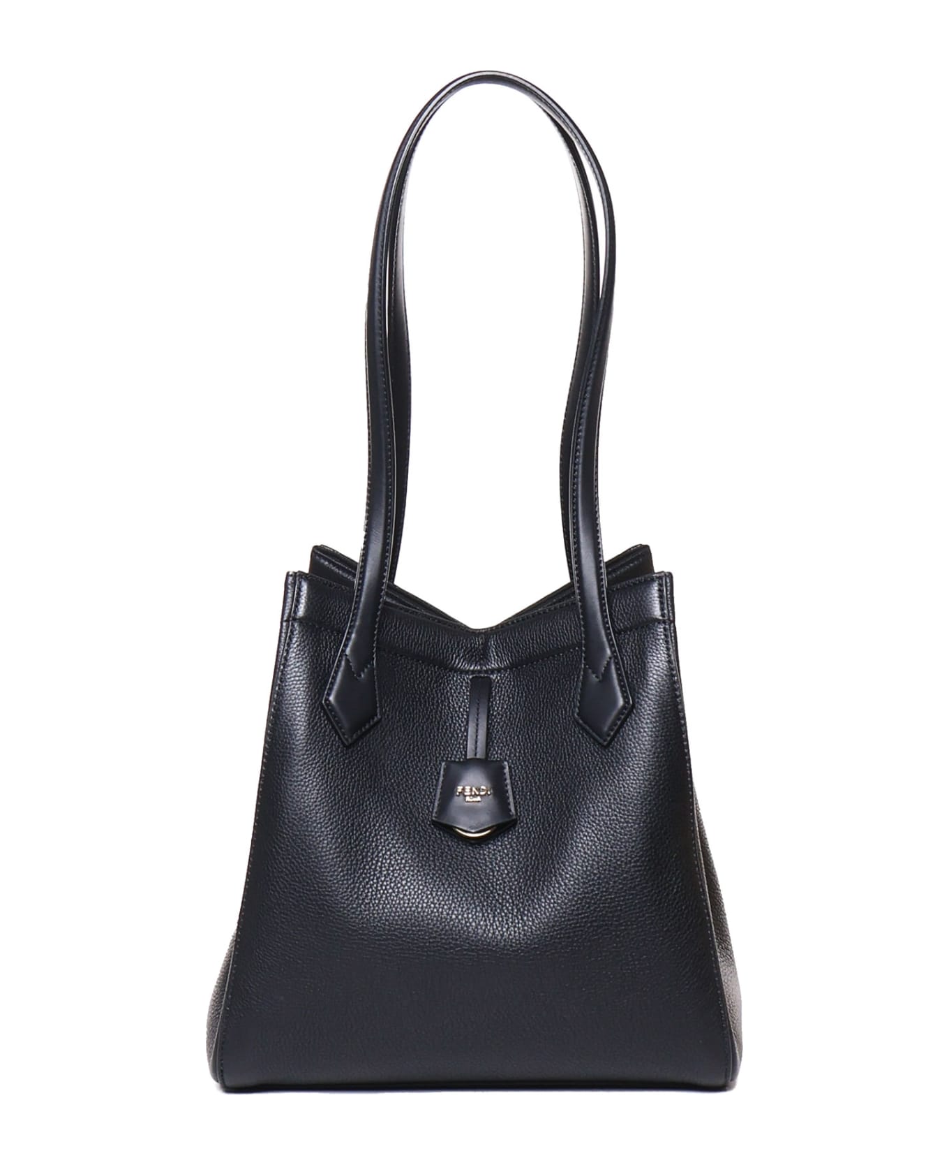 -Innovative and transformable design: thanks to 8 hidden magnets, the bag can be worn both as a shopper and as a bucket bag, folding it like an origami. -Key ring pendant with metal Fendi writing -Internal lined compartment -Metal accessories with golden finish -Made in Italy -Dimensions: 27x16. 5x27 cm -Colour: Black