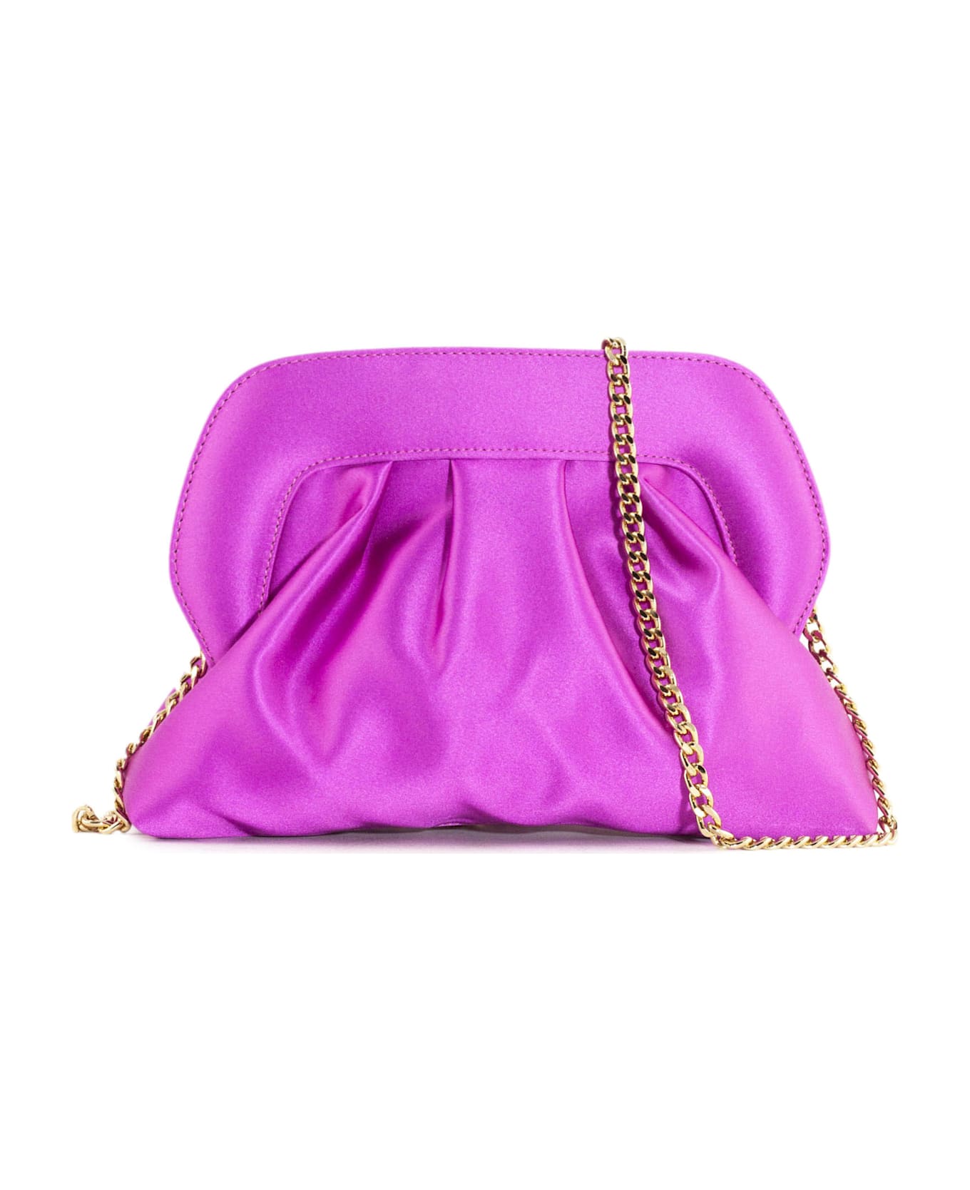 Fuchsia satin Ophelia bag, hidden metal chain, snap button closure, Width 21 cm, Height 19 cm, Depth 7 cm, Chain length 120 cm Composition: Fabric, 100%