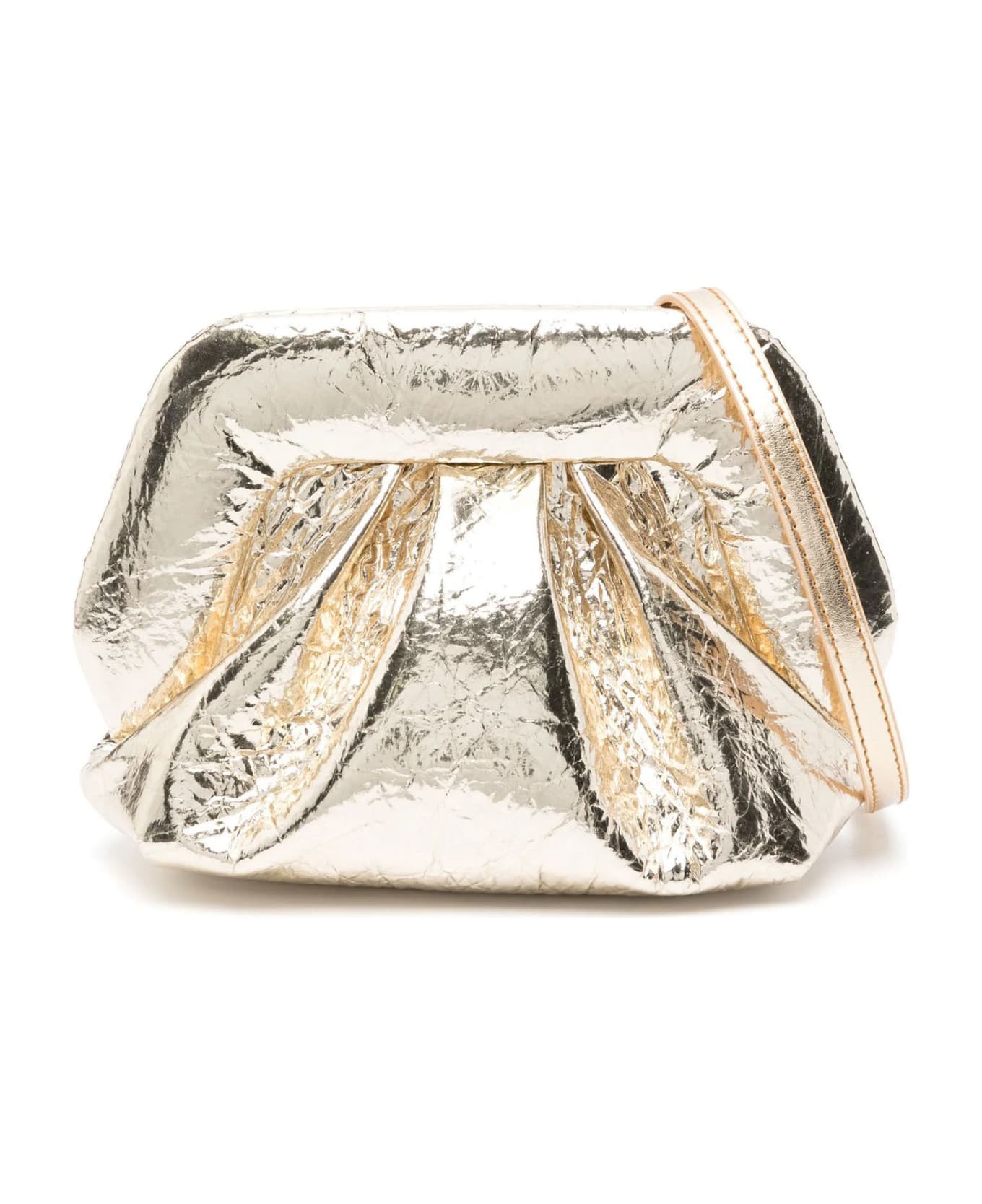 Gea pleated clutch bag, gold-tone faux leather, metallic effect, crinkled finish, pleat detailing, padded panels, adjustable detachable shoulder strap, main compartment, contrast lining, gold-tone hardware, concealed magnetic fastening, depth 9 cm, height 14 cm, strap 54 cm, width 16 cm