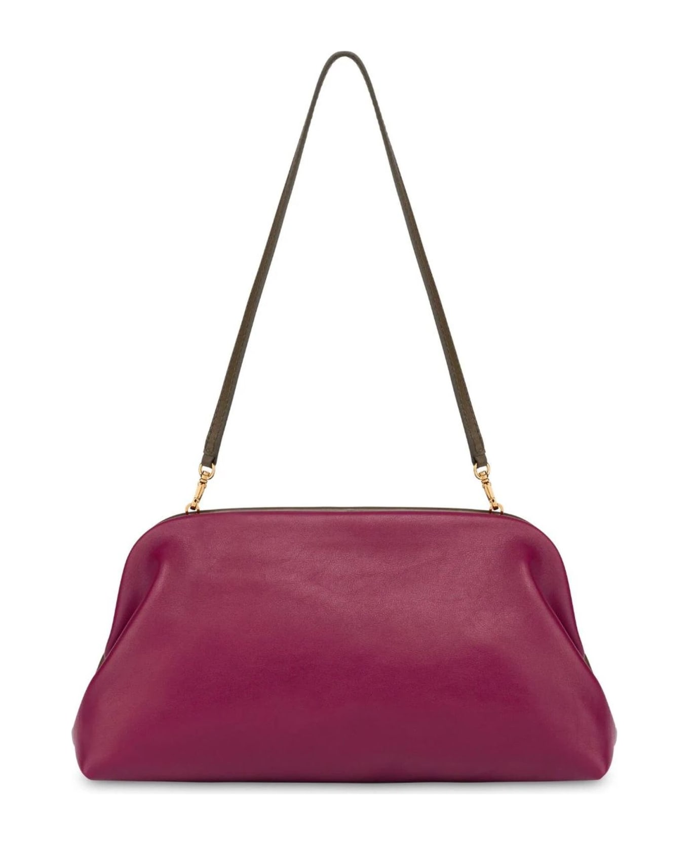 Lauren leather clutch bag, magenta/coffee brown, calf leather, two-tone design, detachable shoulder strap, concealed magnetic fastening, main compartment, gold-tone hardware, size 31x15x10 cm