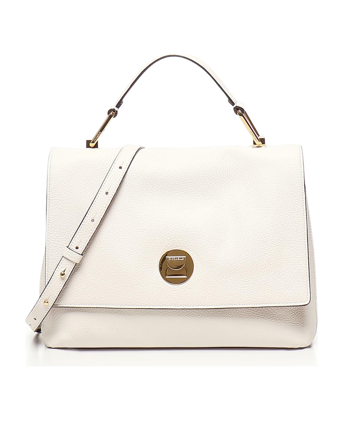 -Closure with half-moon twist lock -Lined -Internal partition -Back pocket closed with button -Three internal pockets -Dimensions: 30 x 24 x 12 cm -Color: Off-White
