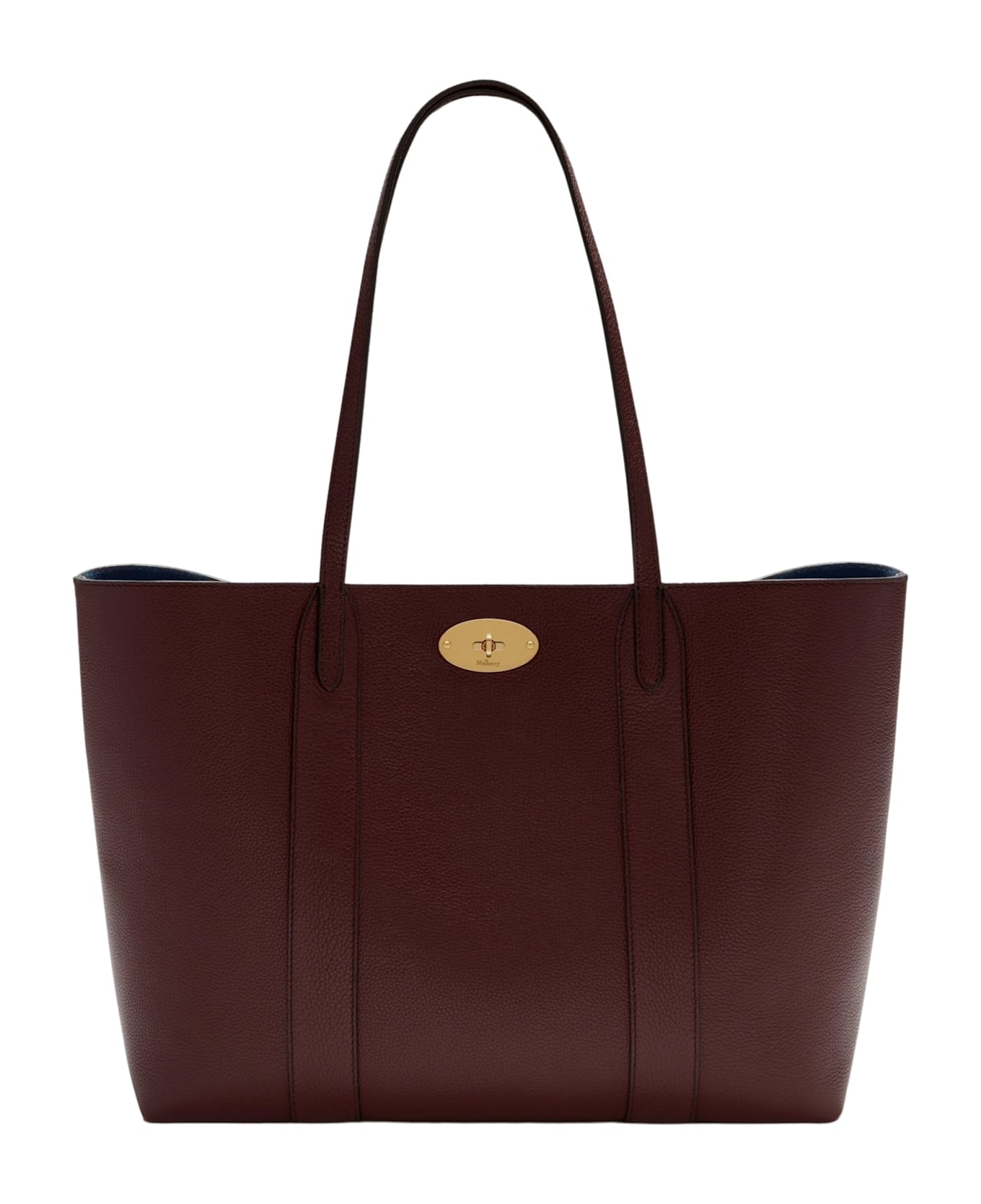 Bayswater Tote Small Classic Grain Black bag - Mulberry - burgundy color - grained leather - double top handles - swivel closure - removable inner compartment - blue contrast suede lining - dimensions: h 30cm, w 49cm, d 15cm