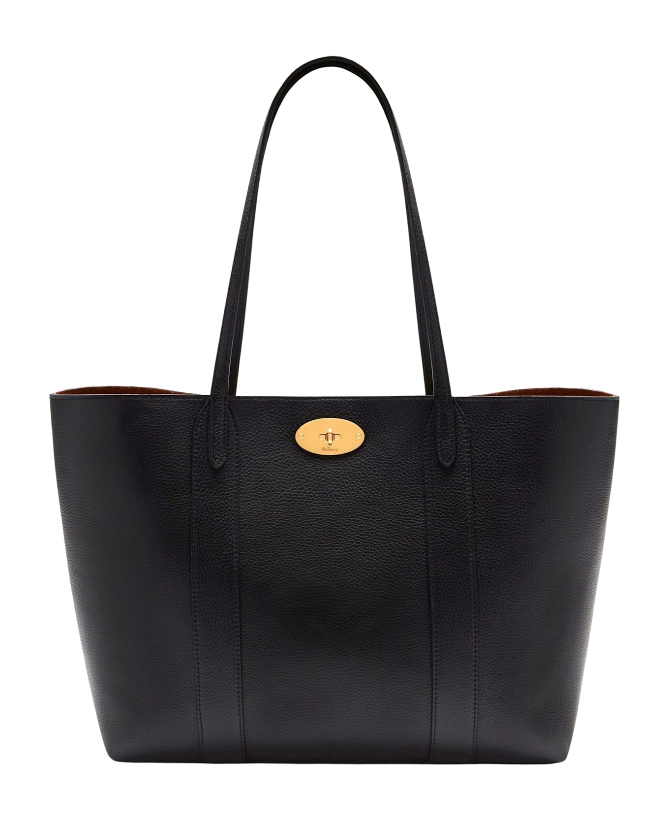 Bayswater Tote Small Classic Grain Black bag - Mulberry - black color - grained leather - double top handles - swivel closure - removable inner compartment - contrasting suede lining - dimensions: h 30cm, w 49cm, d 15cm