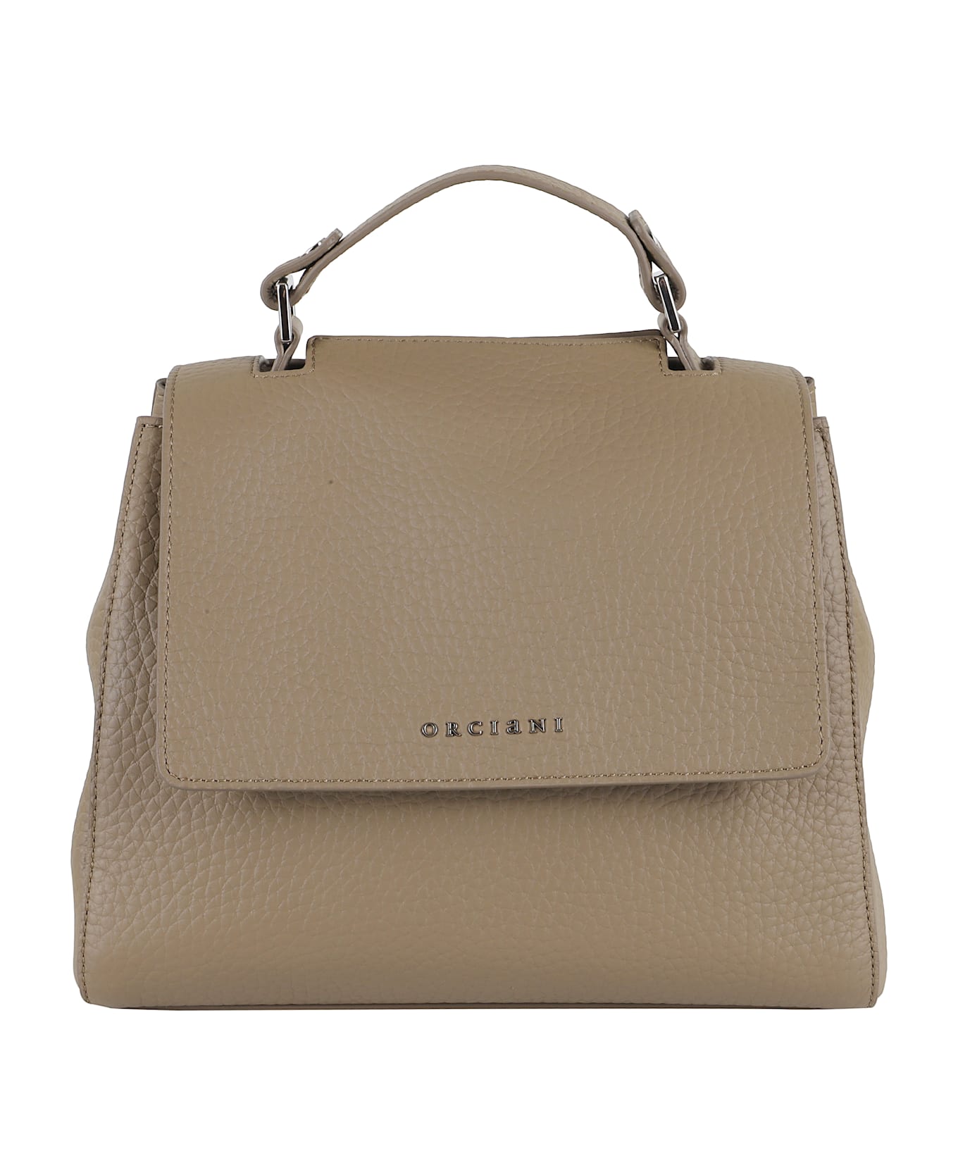 Sveva Soft S bag - Orciani - Kiwi color - Made of garnet leather - Single compartment with inside pocket - Top handle - Adjustable and removable shoulder strap - Front metal logo - Dimensions: 26 x 20 x 13 cm.