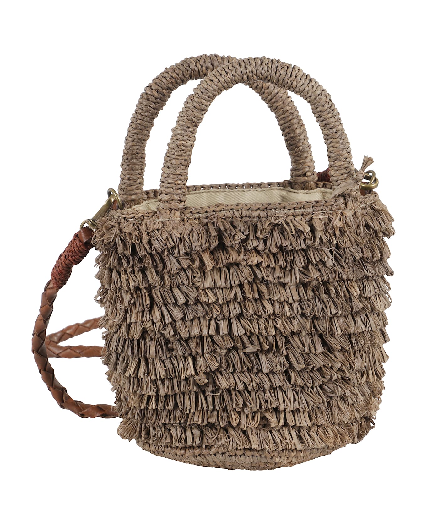 Naka bag - Ibeliv - Dark tea color - Made of natural raffia - Double handles - Removable woven shoulder strap - Inside drawstring closure - Size: 13 x 14 cm