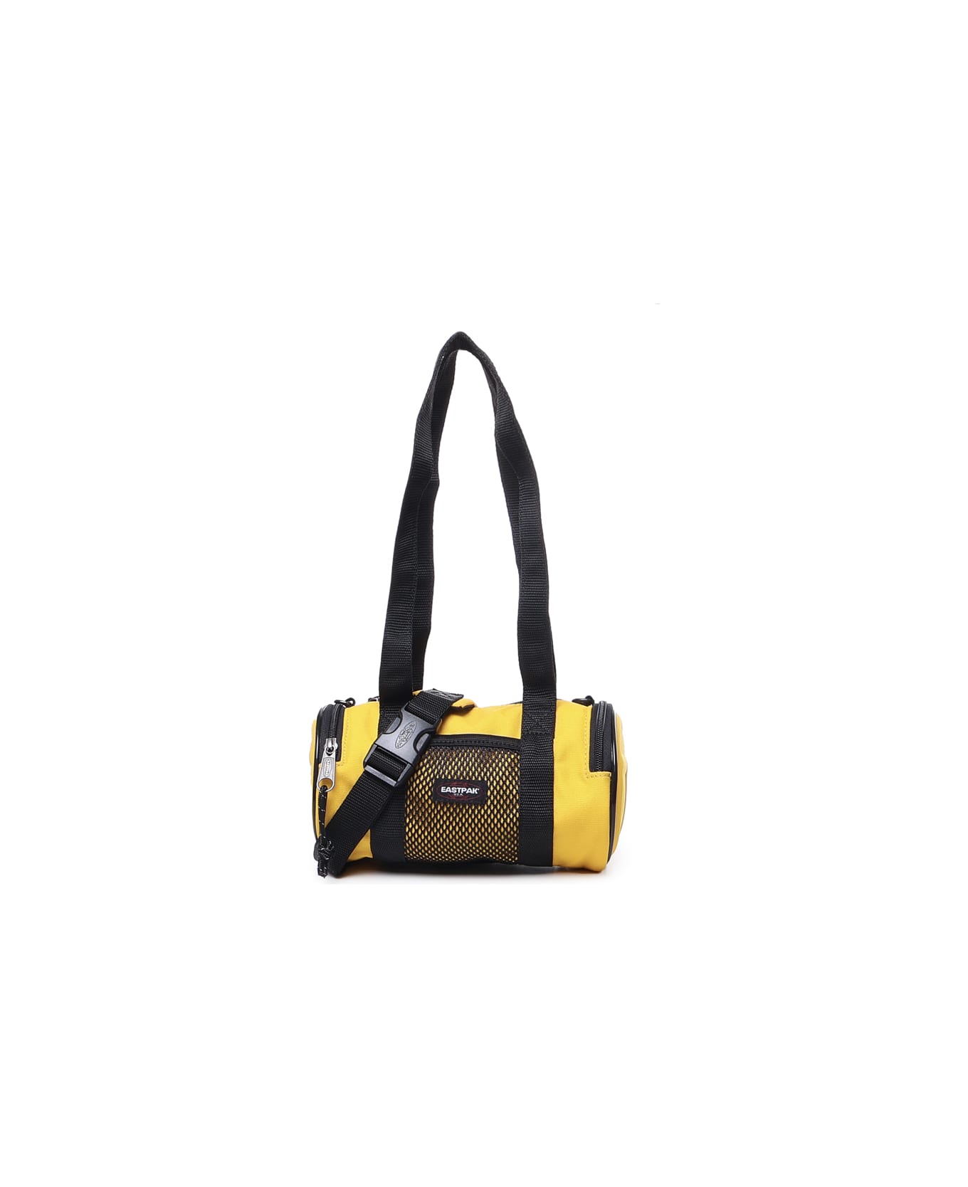 Yellow Cylindrical Messenger Bag For Telfar from Telfar -Mesh panels -Top zip closure -Two side zip pockets -Two handles -Adjustable and removable shoulder strap -Single compartment -Colour: Yellow -100% Polyester