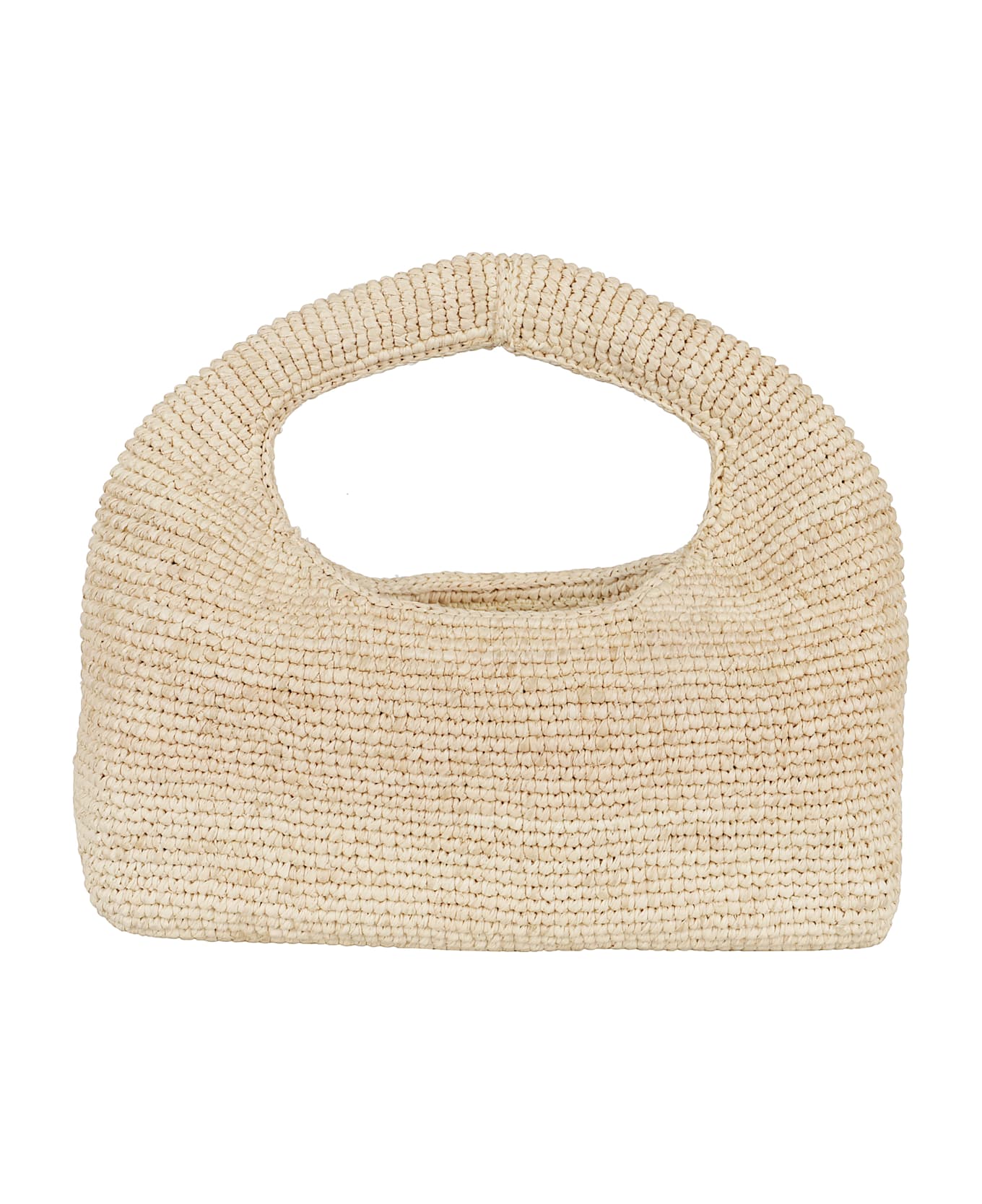Halfmoon bag - Manebì - Natural color - Made of raffia - Single compartment - Top handle - Size: 21cm x 24cm x 6cm