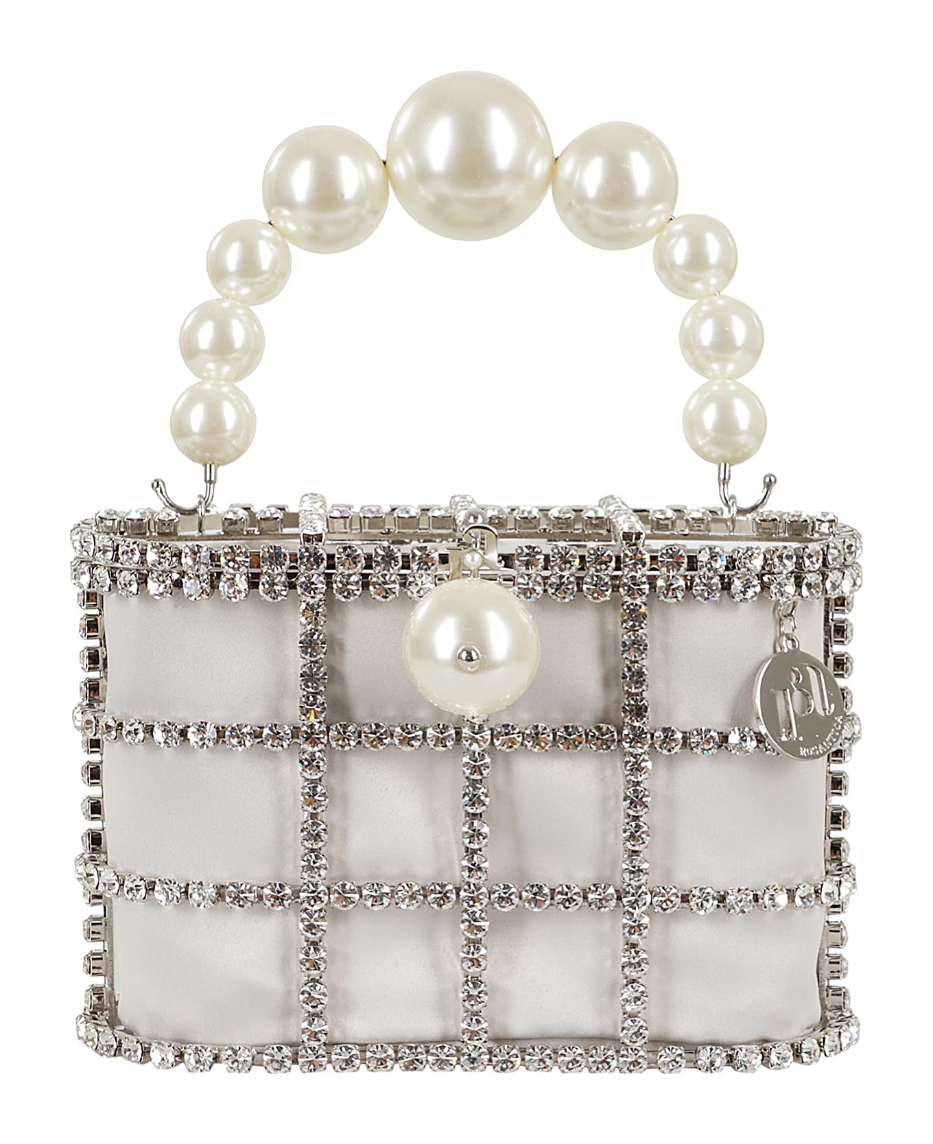 Holli bag - Rosantica - Silver color - Cage design with applied crystals - Top handle with extra large removable pearls - Removable fabric pouch - Front closure with pearl and hook - Dimensions: Height 12cm, Width 18cm, Depth 9cm