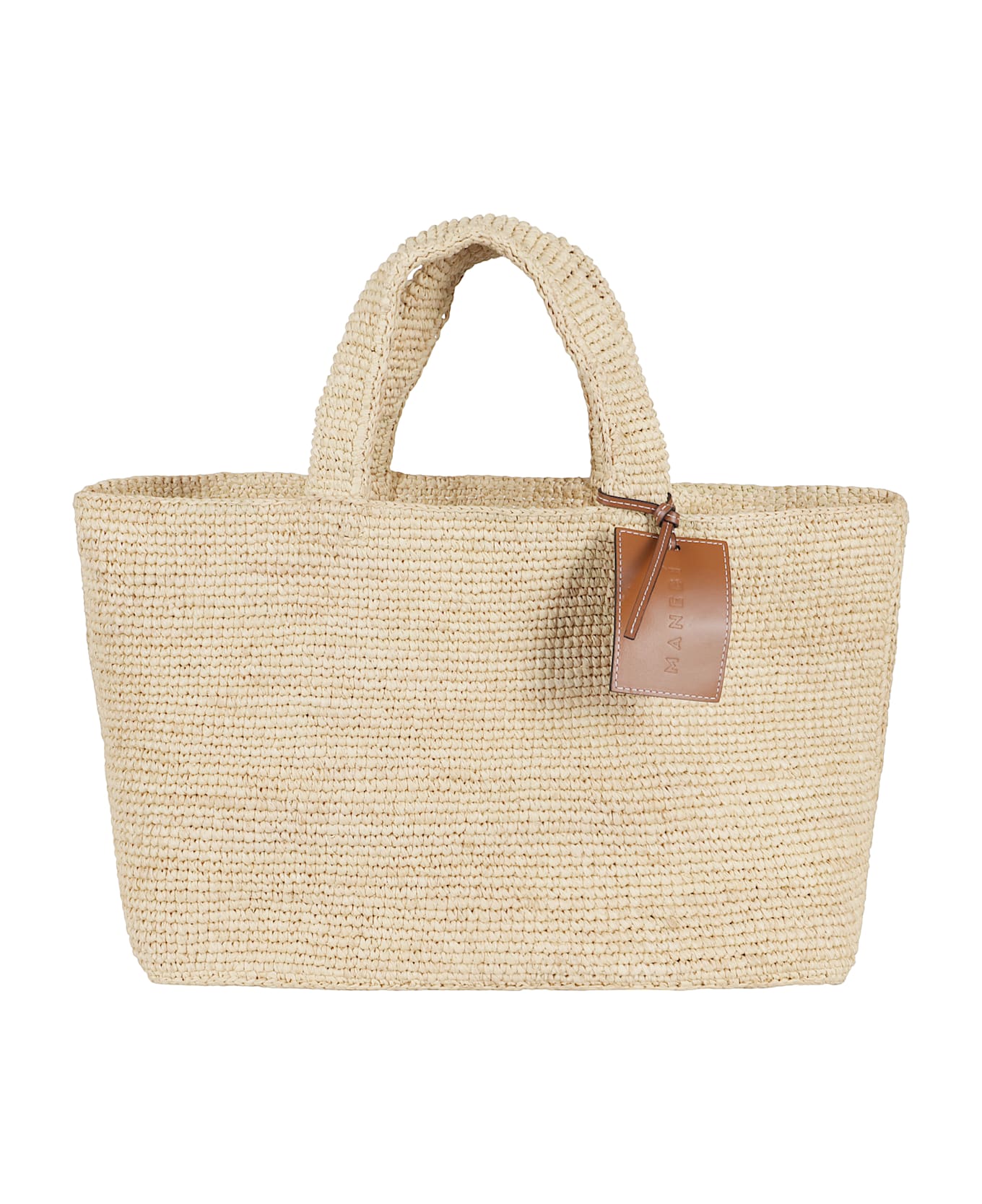 New Sunset Medium bag - Manebì - Natural color - Made of raffia - Single compartment with inside pocket - Double top handle - Shoulder strap - Size: 44 x 26 x 12 cm.