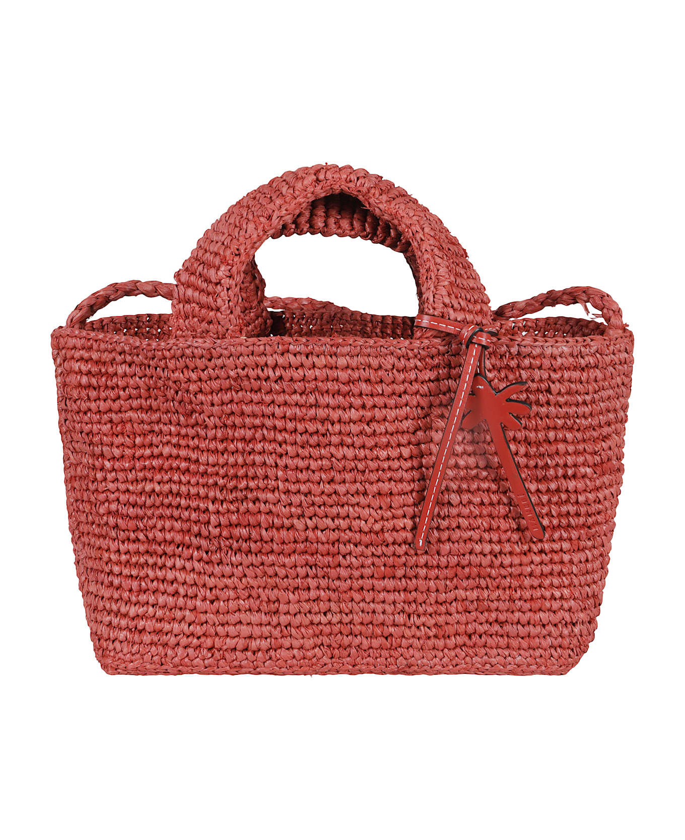 New Sunset Mini bag - Manebì - Rust color - Made of raffia - Single compartment with inside pocket - Double top handle - Shoulder strap - Size: 26 x 15 x 8 cm