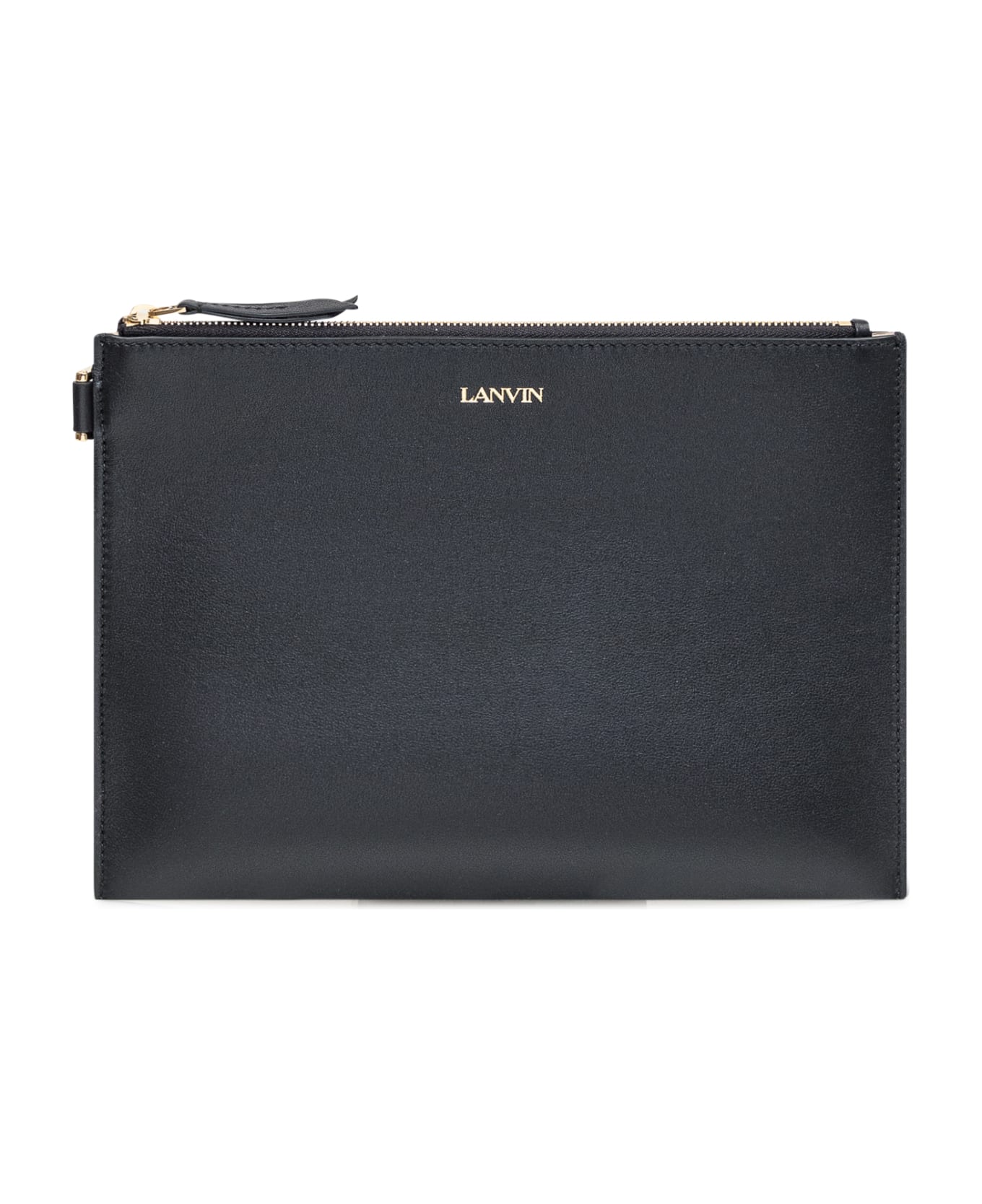 Black leather clutch. Zip closure. Removable handle. Small side pocket. Composition: 100% Leather