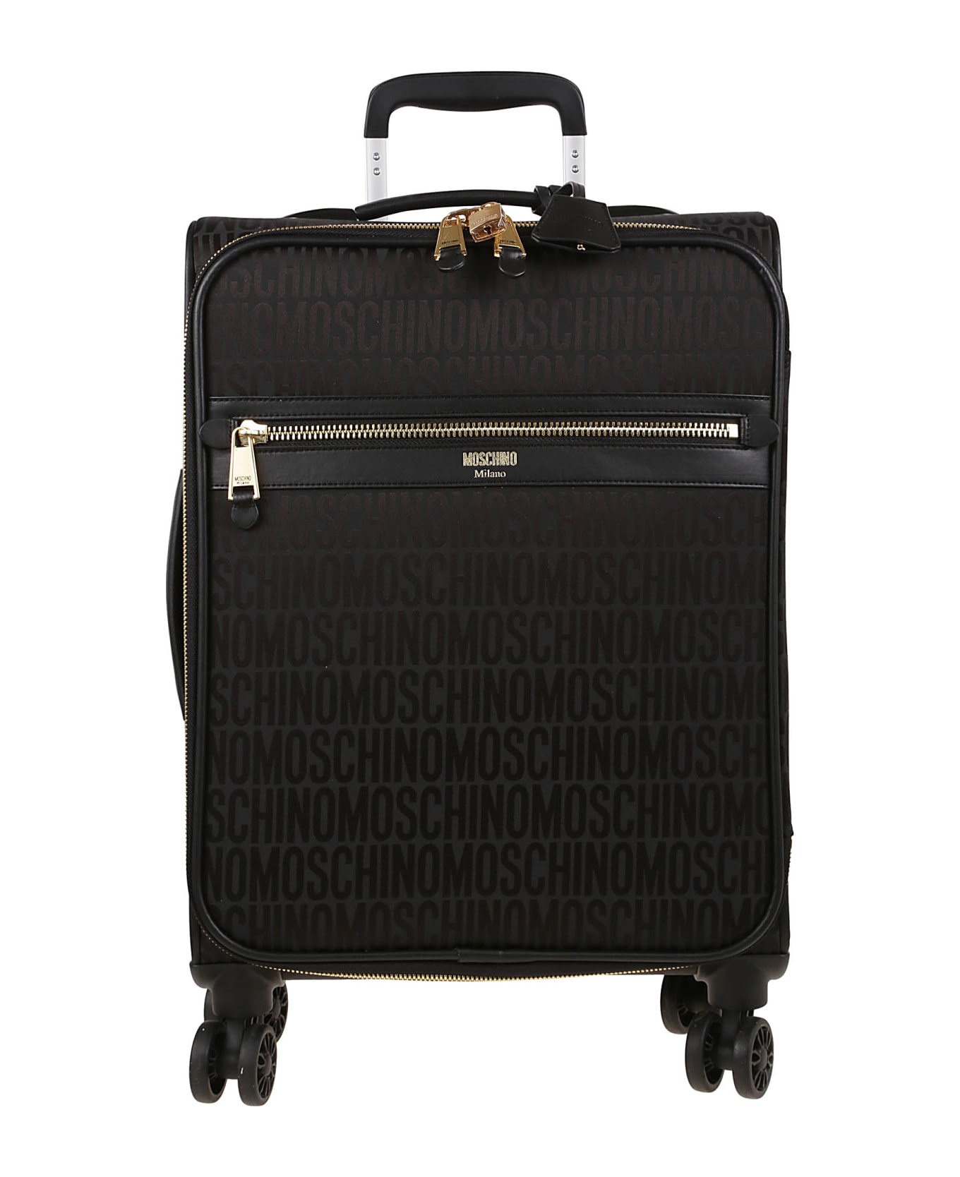 Nylon trolley BY MOSCHINO. Double slider zip closure; one front pocket with zip. Tone-on-tone all-over logo print detail and contrasting MOSCHINO Milano logo print on the front.