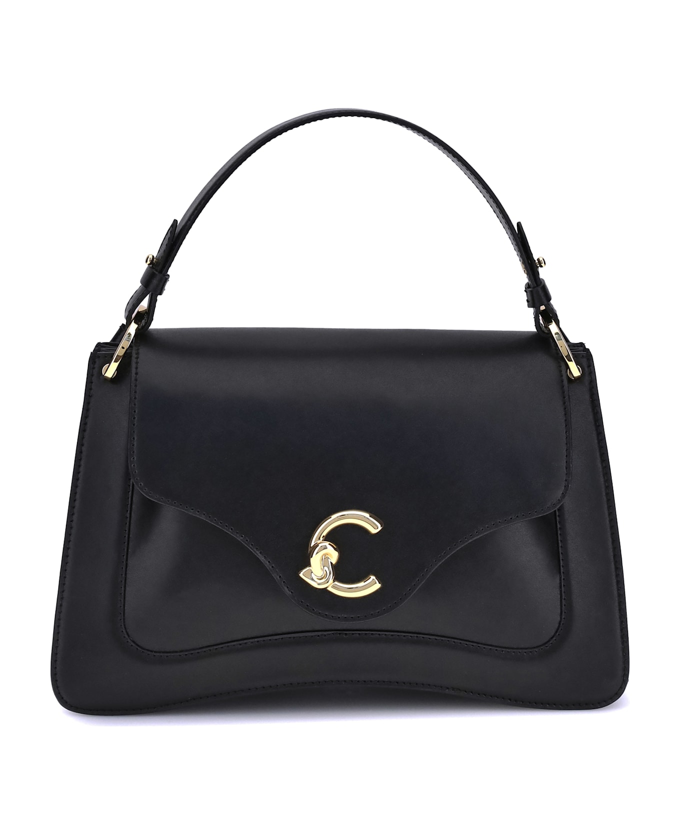 The medium c-me handbag by coccinelle, made of smooth leather, combines functionality and essential style. featuring the distinctive c-me logo in gold metal, it has a magnetic closure and a gusset design that provides structure and capacity. the removable handle allows for versatile portability, while the adjustable leather shoulder strap allows you to wear it on the shoulder or crossbody. equipped with a front pocket, three internal compartments and a zipped partition, it guarantees excellent organization. the embossed gold logo completes with discreet elegance an accessory designed to accompany you every day in style.