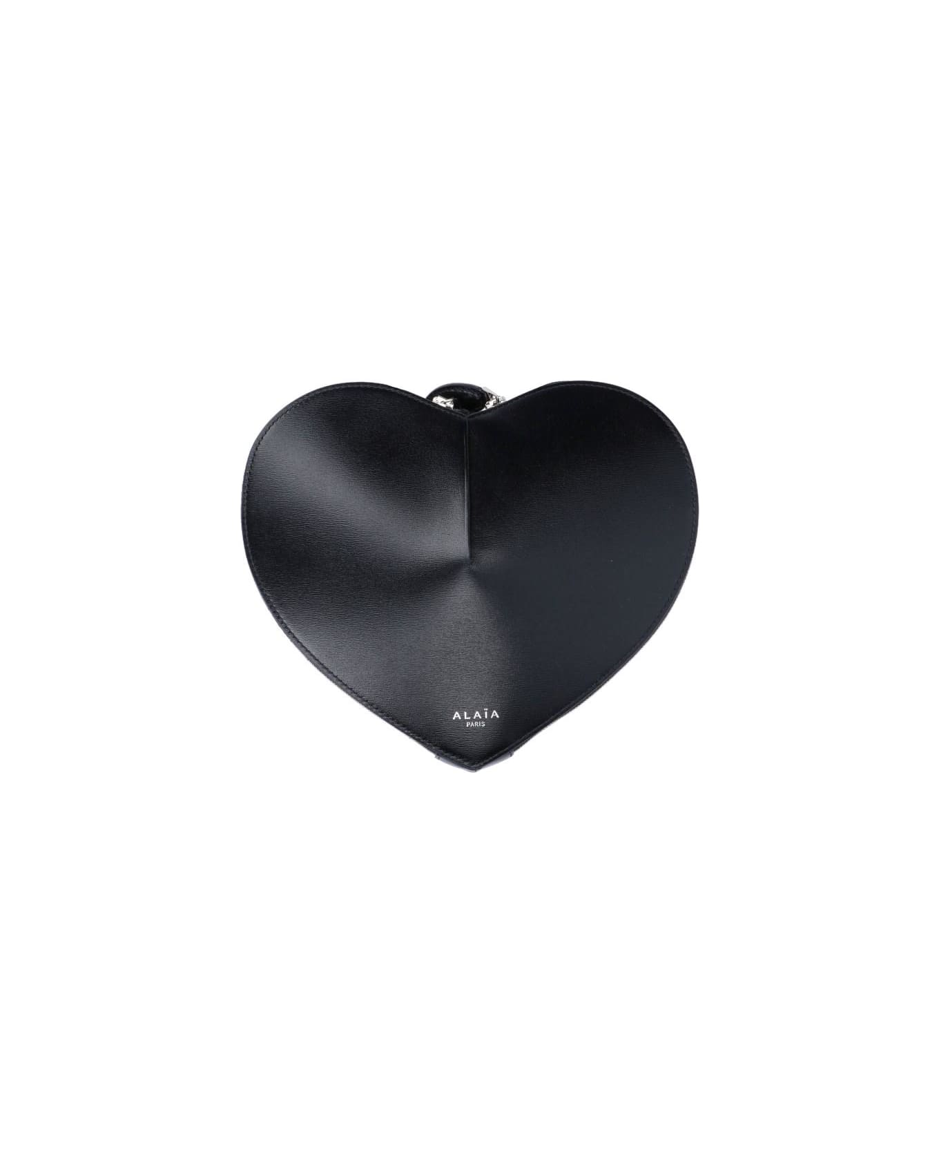 Alaïa Mini Bag 'Coeur', black leather, adjustable shoulder strap, heart design, double zip fastening, silver-coloured embossed logo on front, one main internal compartment.