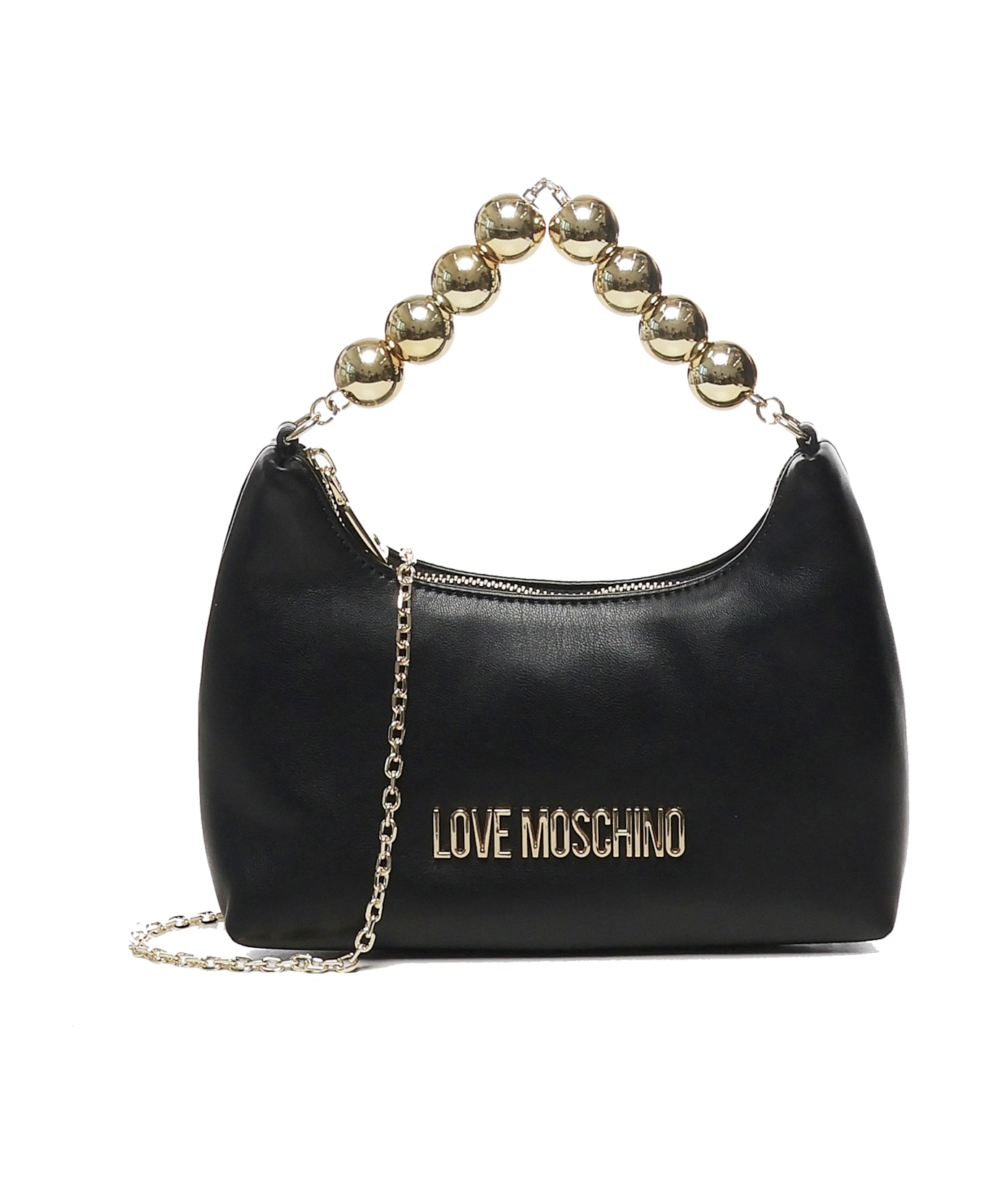 -Top handle made with spheres -Logo on the front -Zip closure -Shoulder strap with chain -Dimensions: 20 x 12 x 7 cm -Color: Black