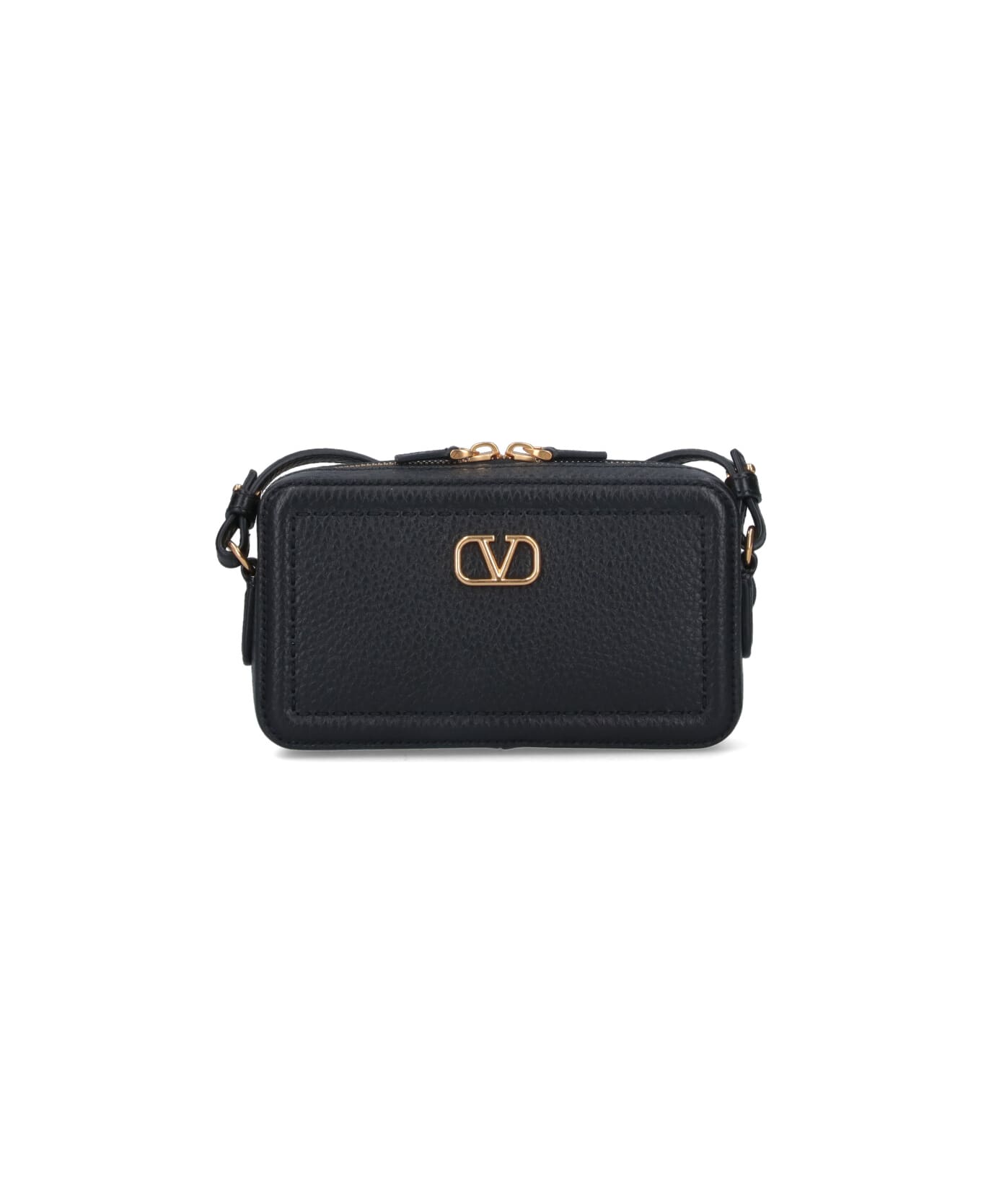 Valentino Garavani 'Alltime' mini crossbody bag in black hammered leather with adjustable shoulder strap, double zip closure, gold metal 'Vlogo Signature' logo on the front, inner card slot, main inner compartment. Composition: 100% Calf Leather