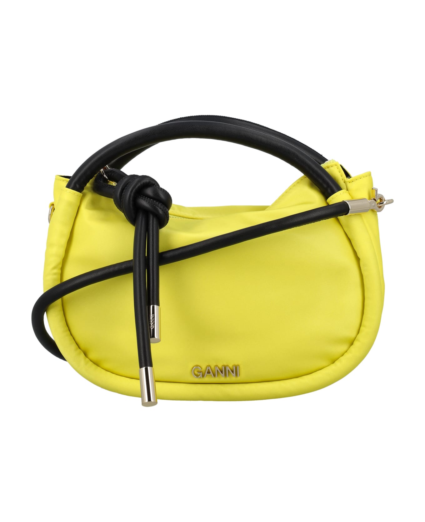 Mini Knot Bag By Ganni. Featuring: Made From A Blend Of Certified Recycled Polyamide Removable Shoulder Strap Double Top Handle Zip Closure With Knotted Leather-like Zip Puller Silver Ganni Logo Main Compartment Inner Flat Pocket Height: 17cm Width: 25cm Depth: 8cm